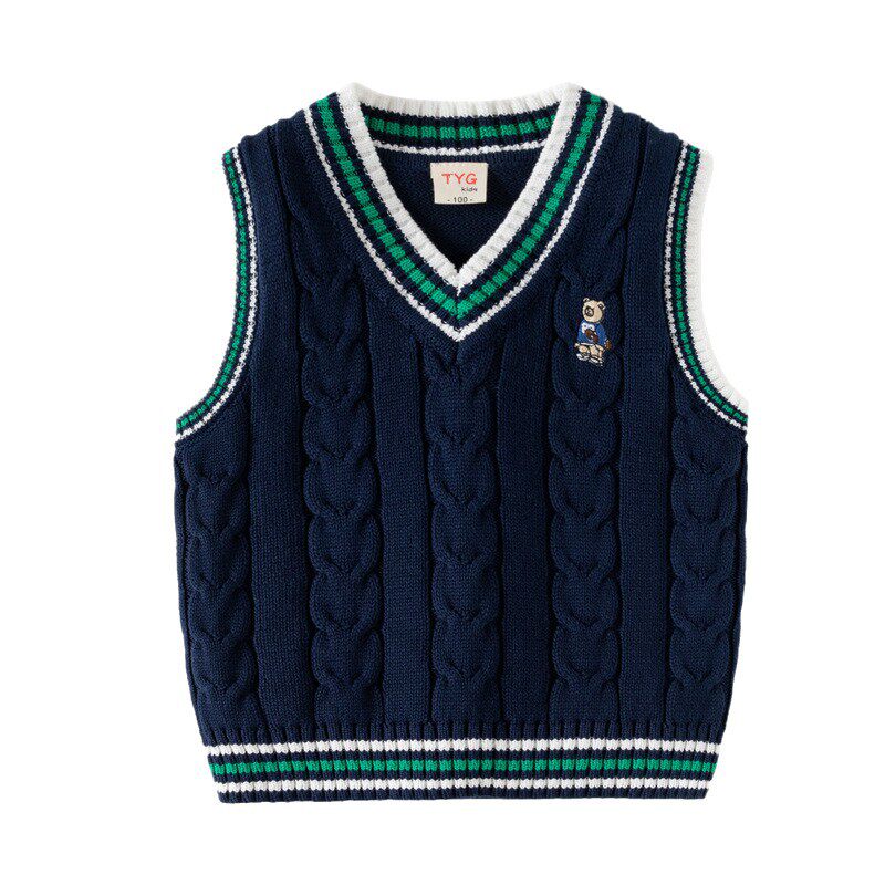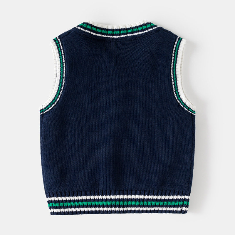 儿童针织背心男女童深蓝色毛线V领马甲小学生纯棉校服学院风毛衣