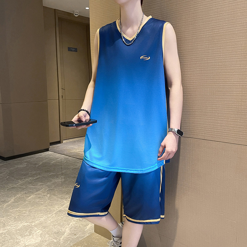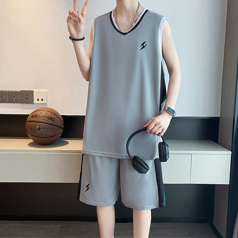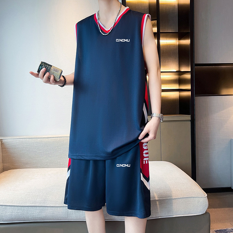 夏季时尚速干通气无袖背心短裤运动套装青少年学生男生篮球训练服