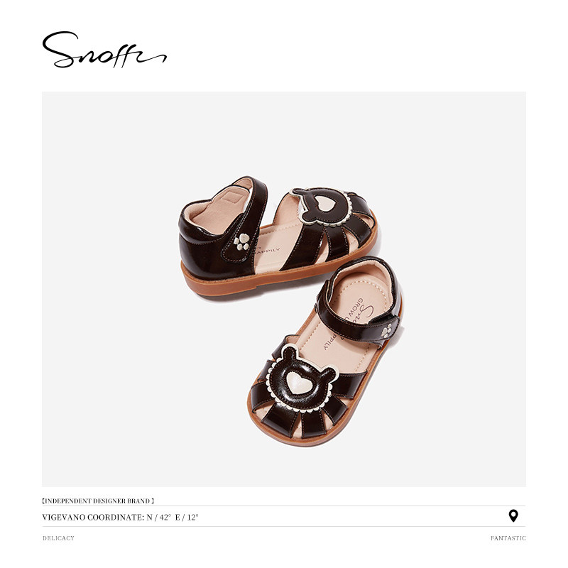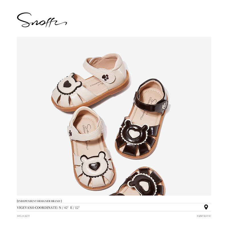 特价清仓斯纳菲宝宝凉鞋包头夏季米色公主鞋包跟小童女童学步鞋棕