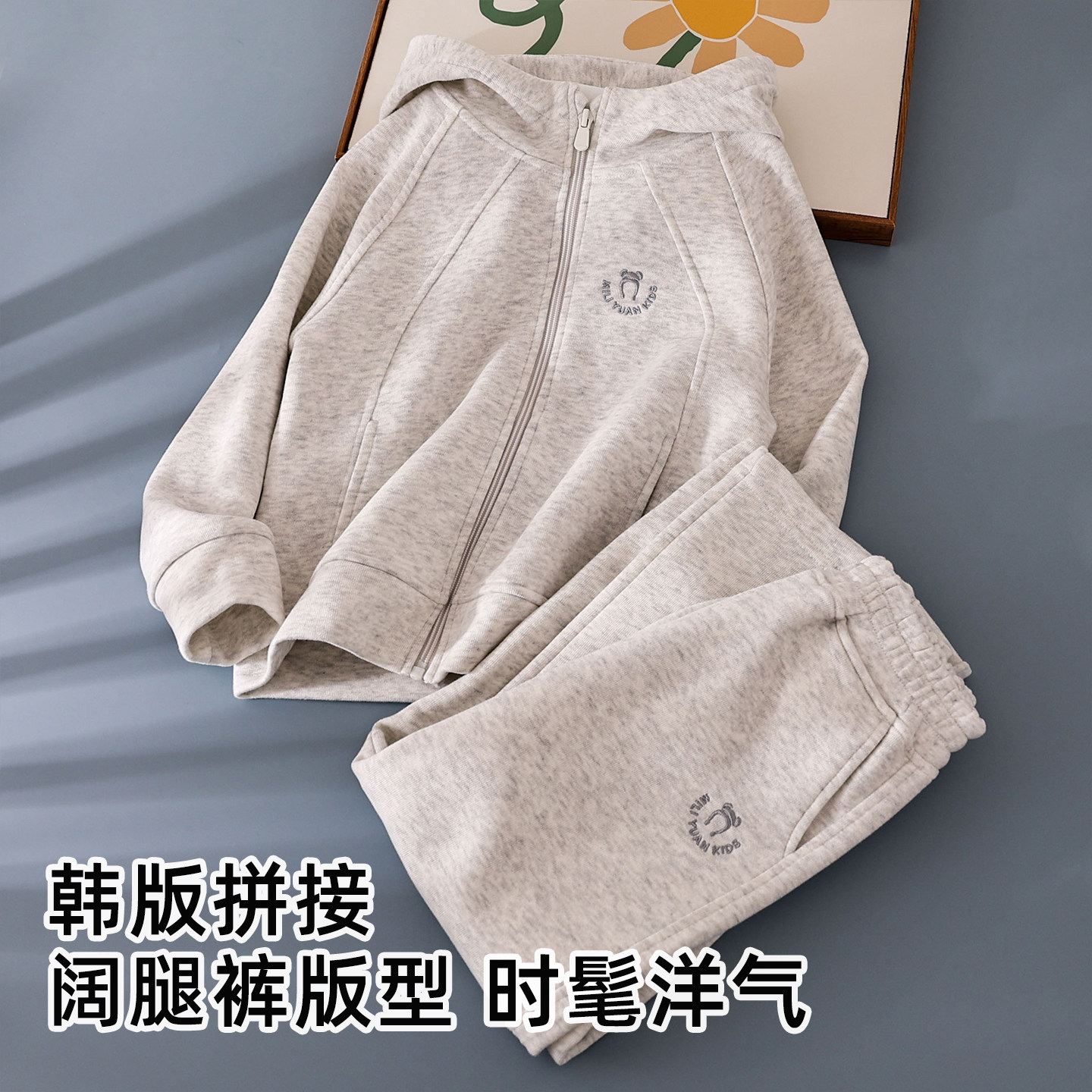 蔚未来女童套装春秋款洋气童装儿童连帽运动服拉链衫直筒裤两件套