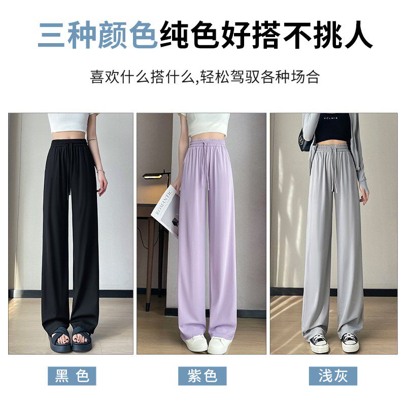 紫色冰丝阔腿裤女款夏季薄款2024新款显瘦防晒裤夏天速干休闲裤子
