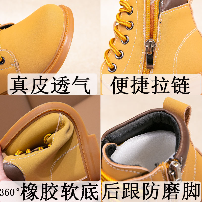 儿童皮靴真皮英伦加绒2026秋冬短靴软底男童中大童女童马丁靴皮鞋