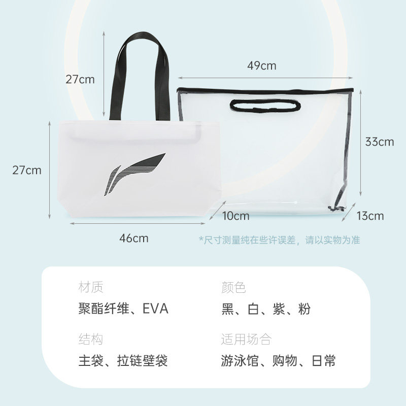 李宁游泳包干湿分离托特包女运动包包休闲背包收纳包单肩旅行包