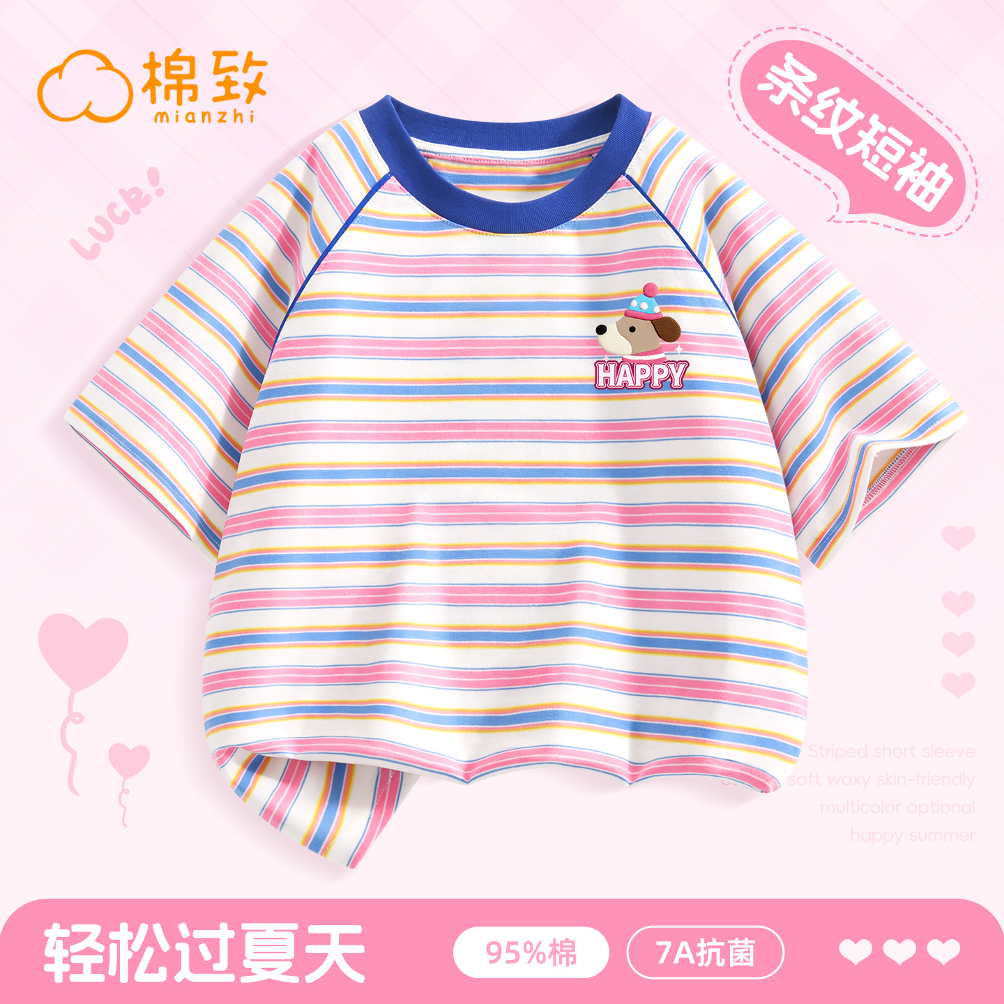 棉致女童短袖t恤2026新款夏季时髦条纹女孩半袖薄款儿童夏装上衣