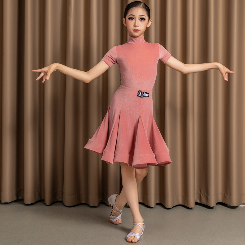 儿童拉丁舞蹈服装短袖新款夏练功女童轻氧超薄丝绒考级比赛规定服