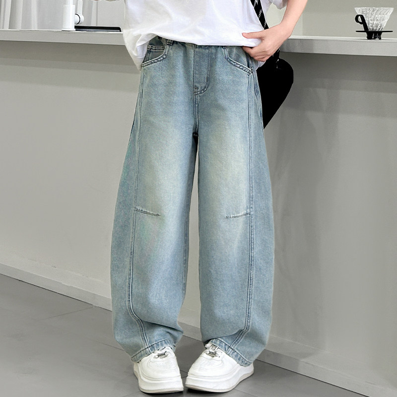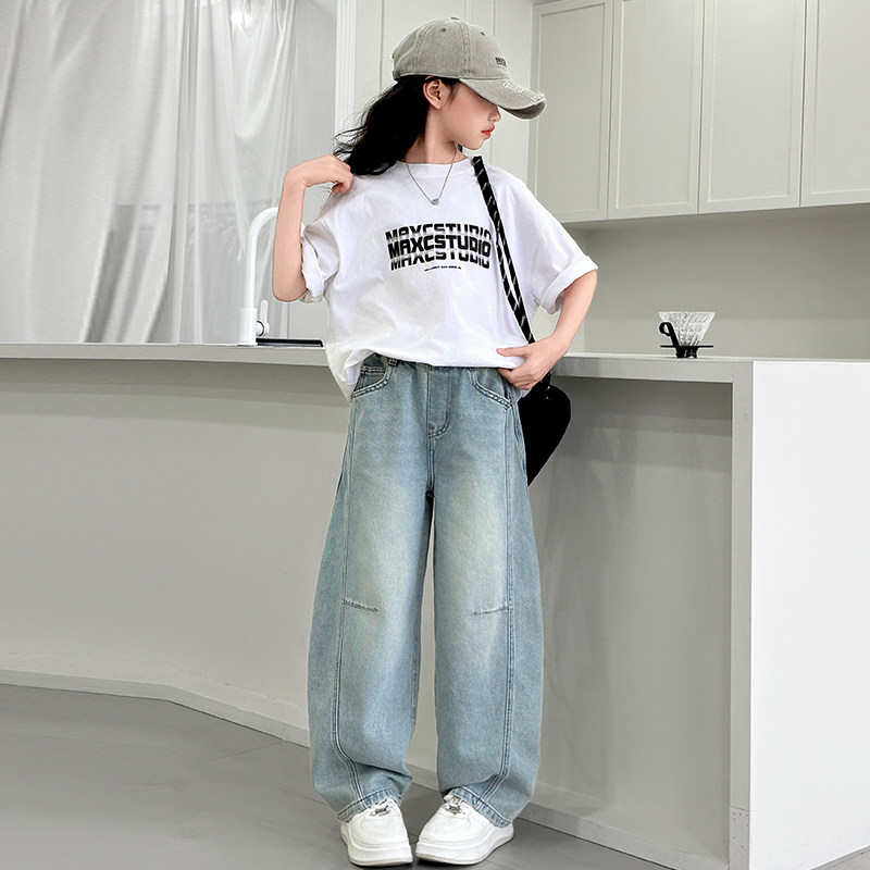 女童夏季天丝牛仔裤2026新款洋气女大童春秋款弯刀裤儿童阔腿裤子