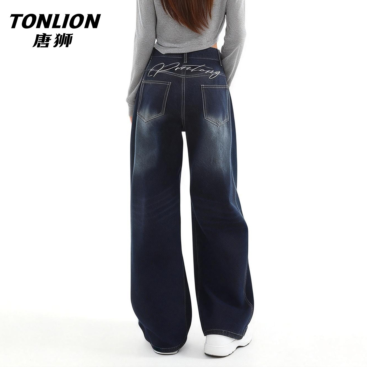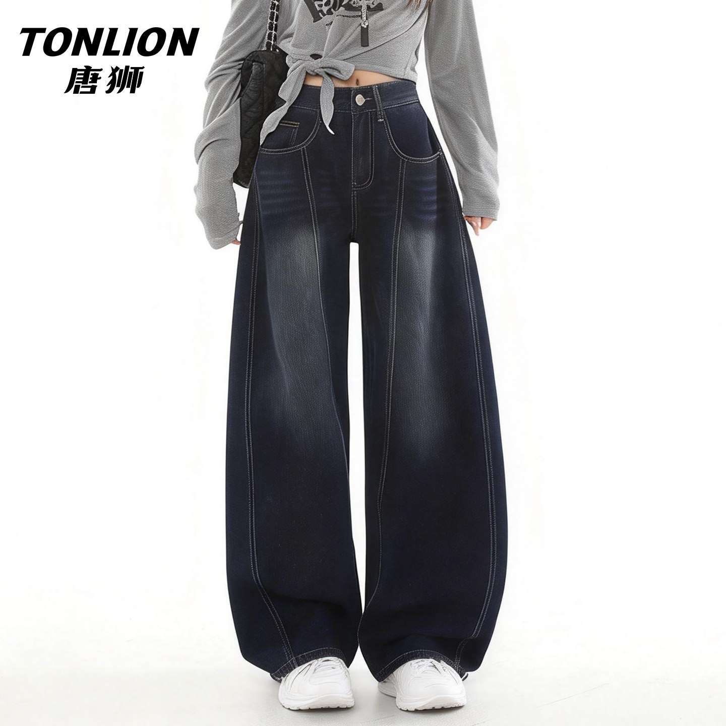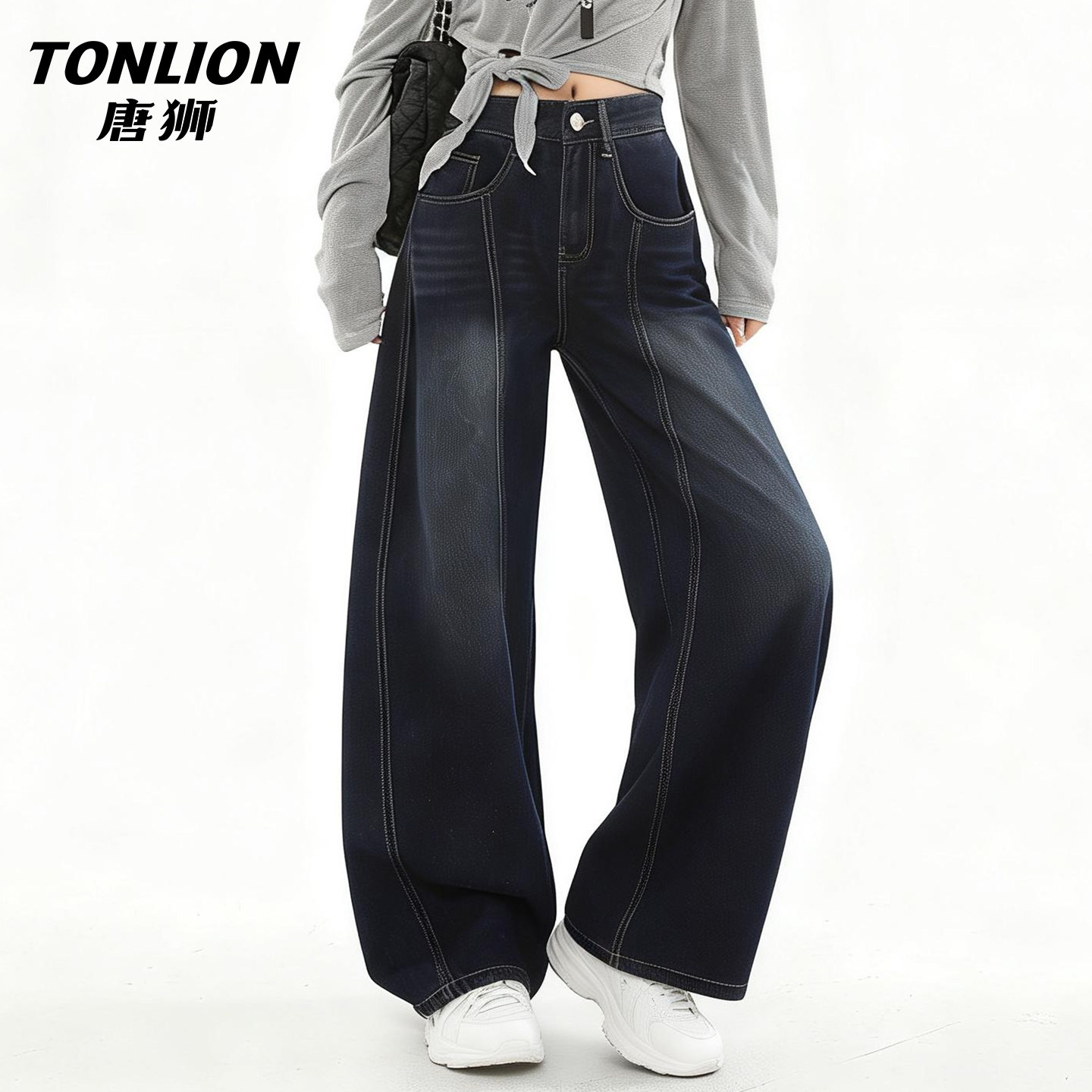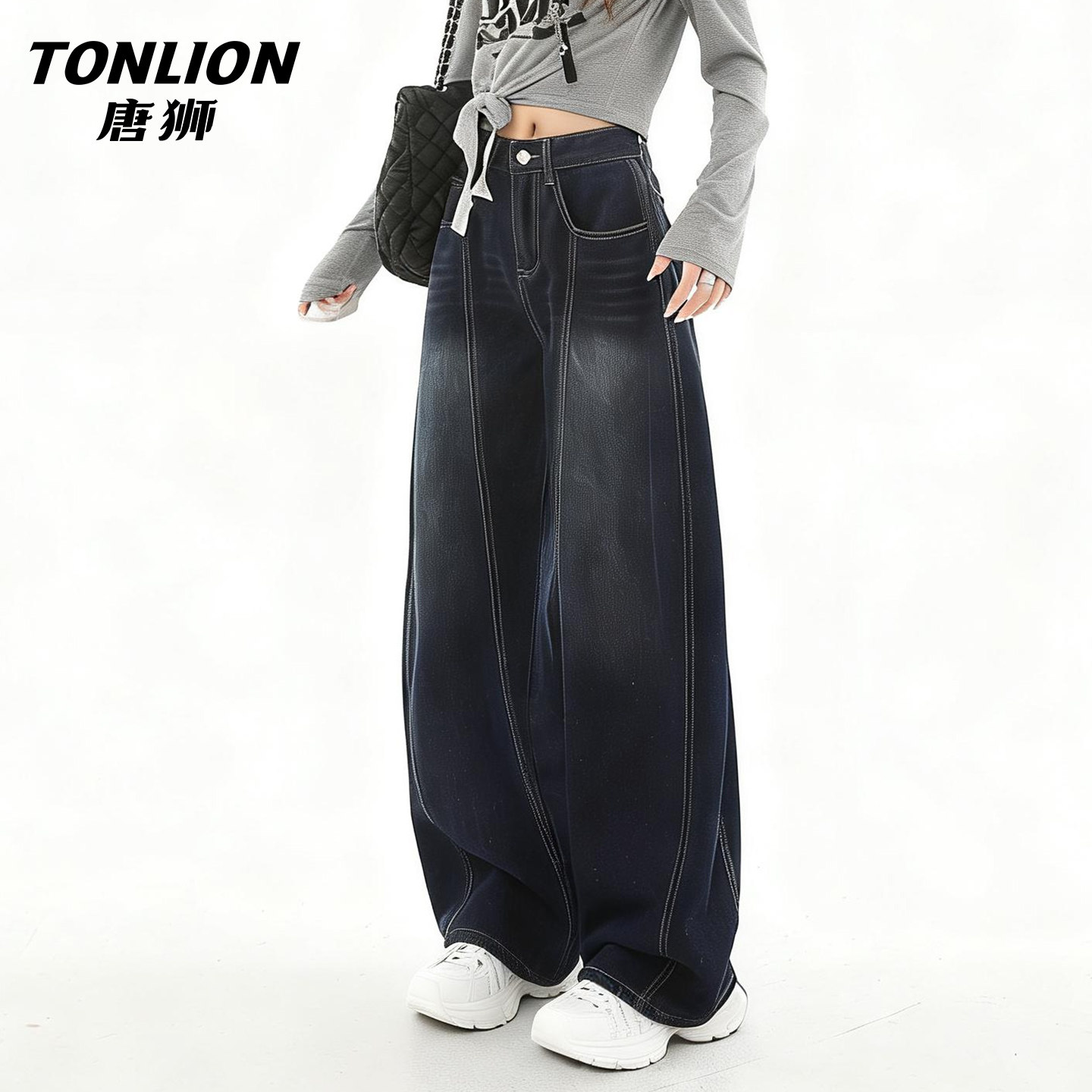 唐狮美式高腰弯刀阔腿牛仔裤女2026新款春夏季宽松直筒拖地裤子GB