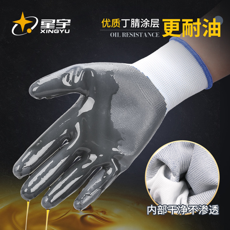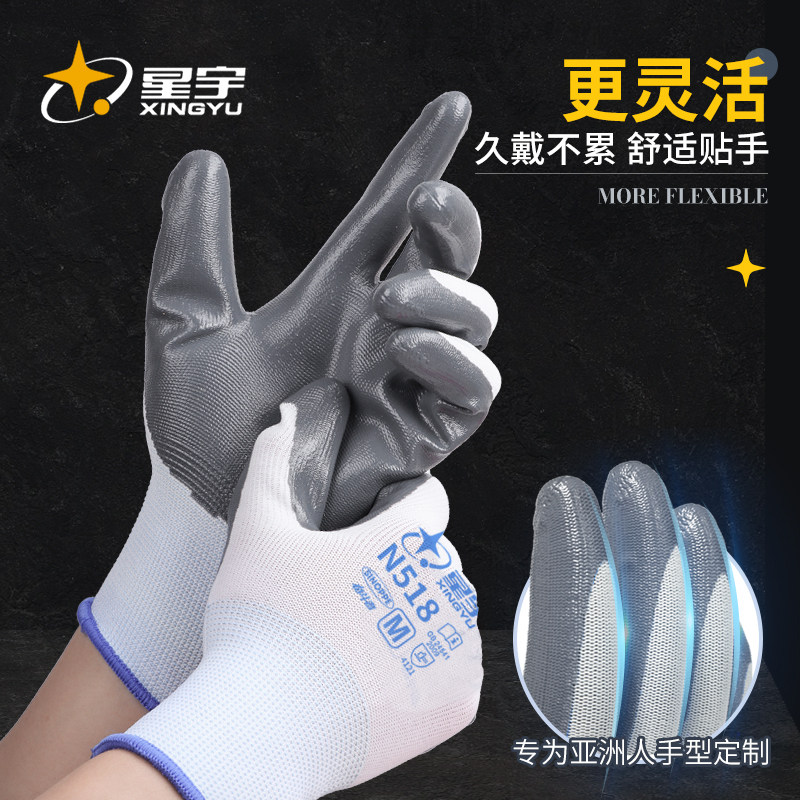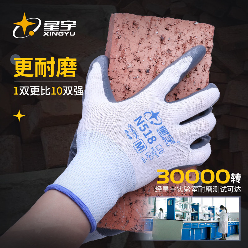 星宇N518丁腈橡胶手套耐磨防滑透气工地工作劳保防油耐用不臭手