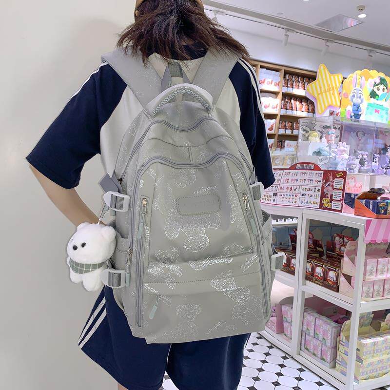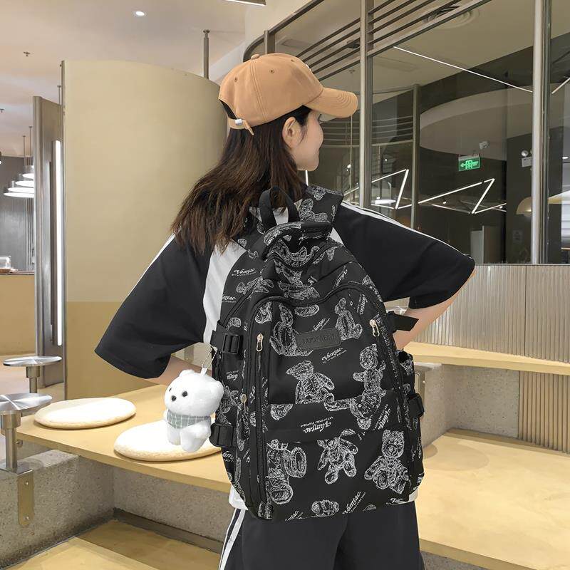 书包女生初中2025大容量高中生双肩包新款背包结实耐用小熊包轻便