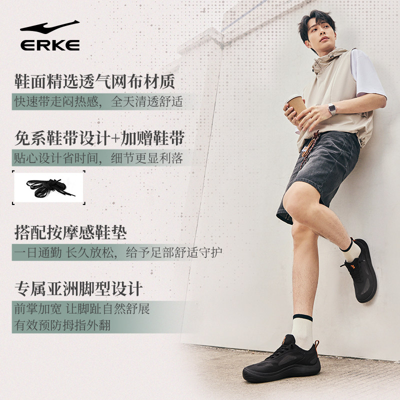 鸿星尔克男鞋懒人鞋夏季一脚蹬赤足鞋网面透气运动鞋通勤休闲鞋男