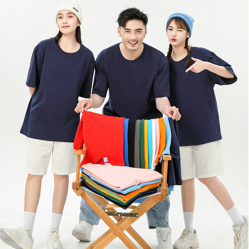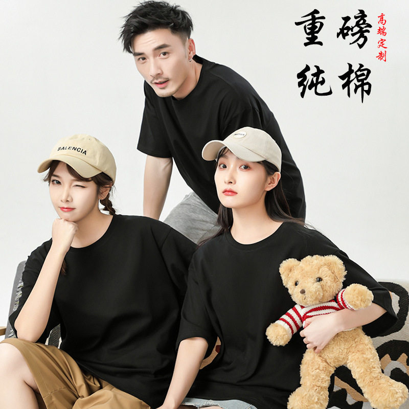 重磅T恤落肩纯棉工作服定制广告衫文化衫班服印字logo刺绣