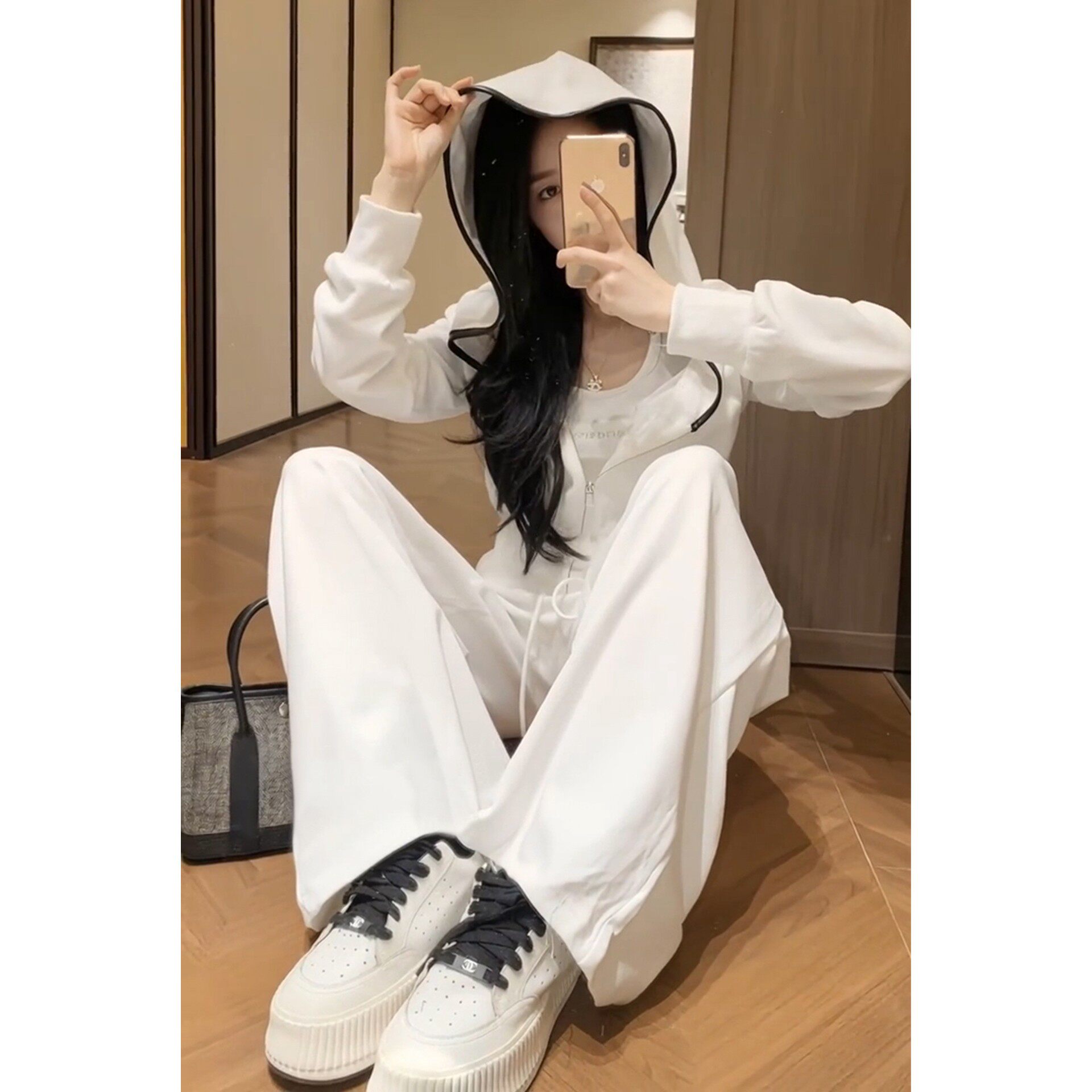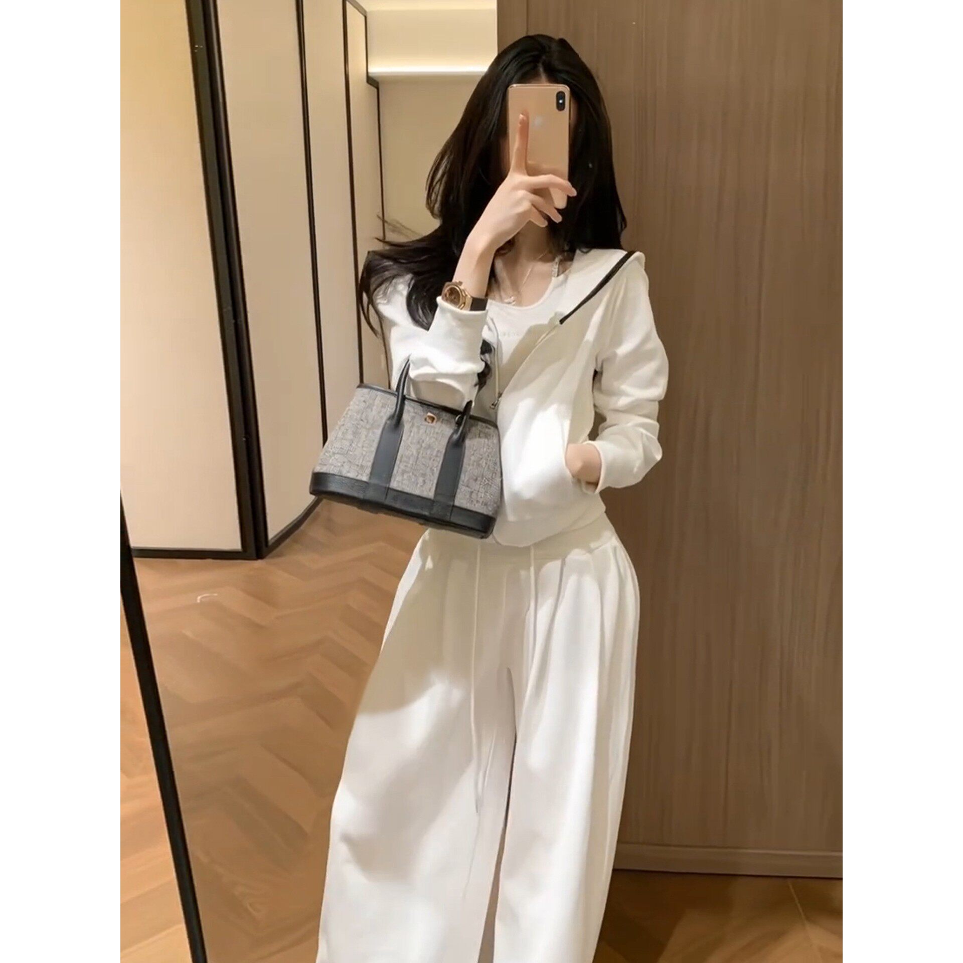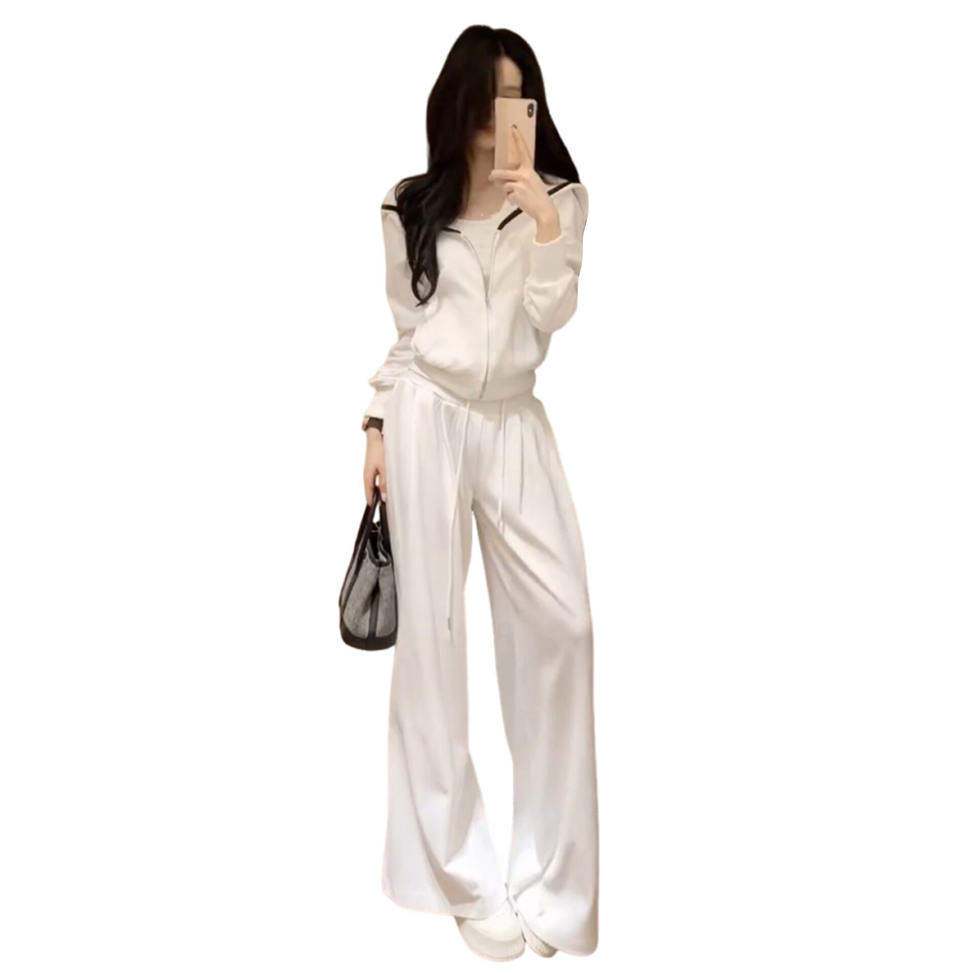 韩系巨好看穿搭一整套早春2026新款白色卫衣上衣女阔腿裤休闲套装