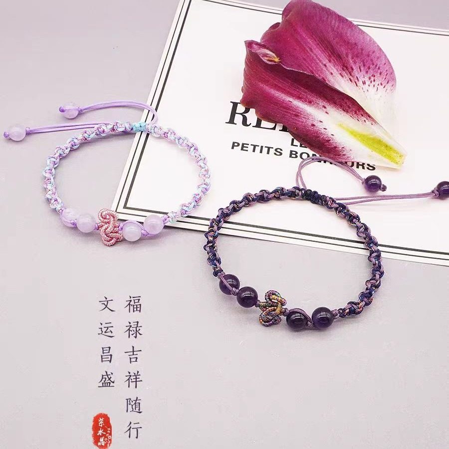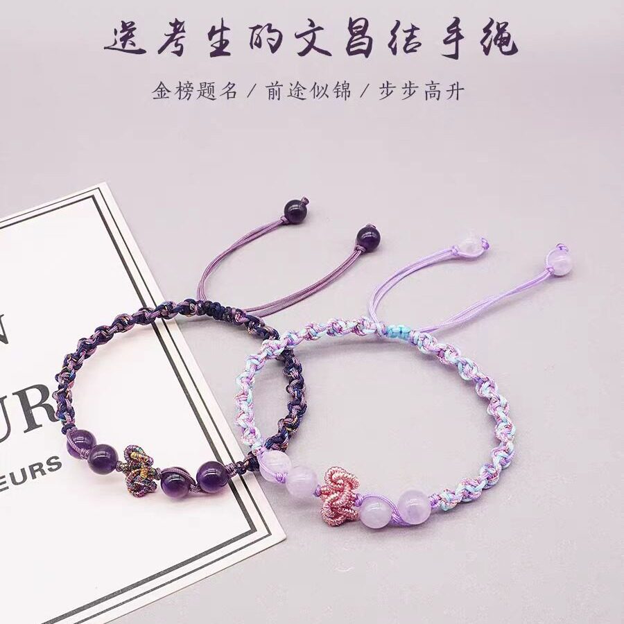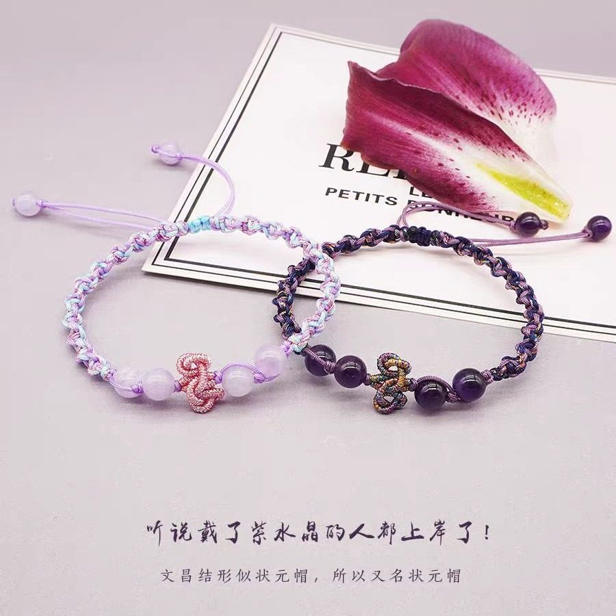 五台山文昌结上岸手绳中高考金榜题名紫水晶情侣手链考试好运礼物