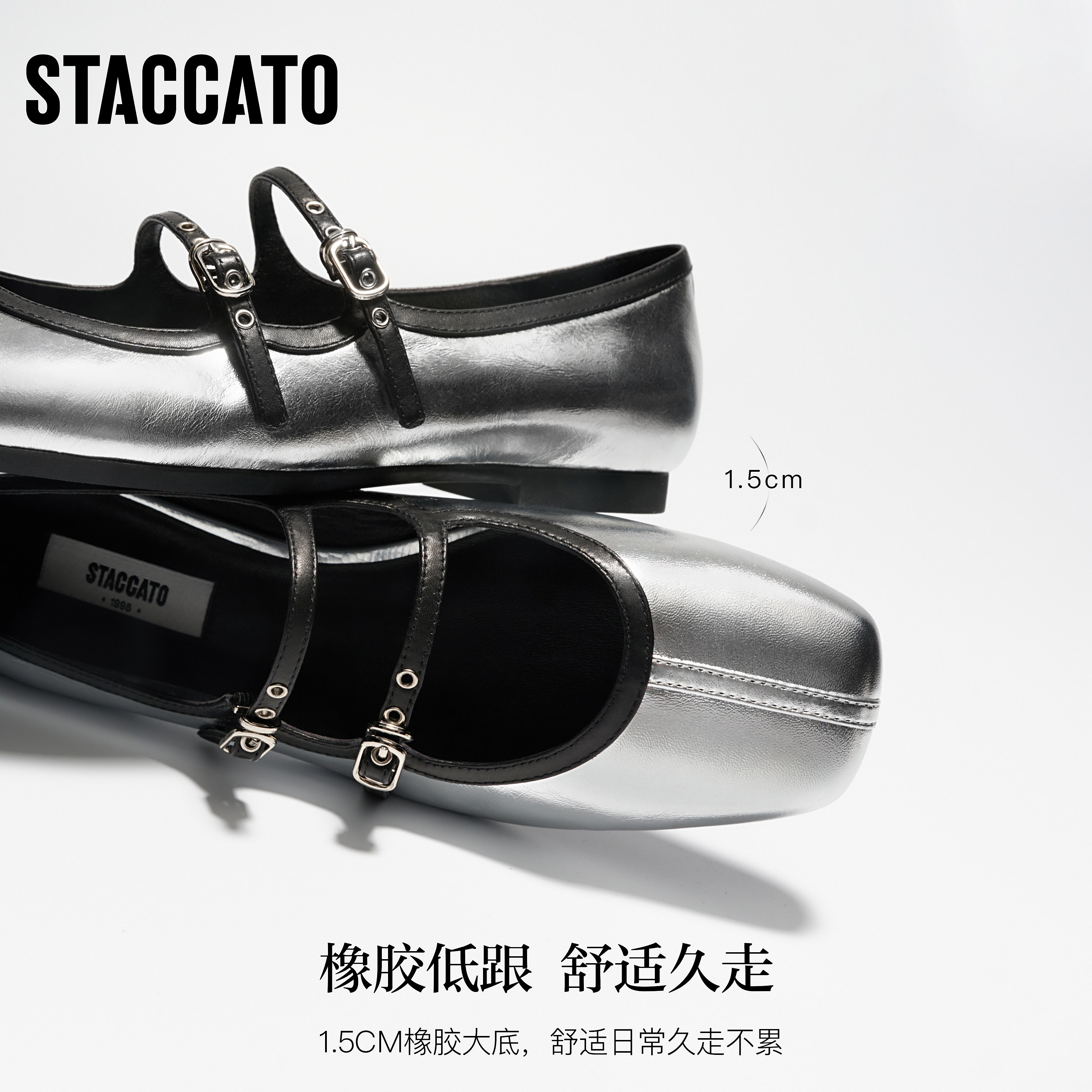 杨幂同款思加图2026新款爱丽丝复古银色法式玛丽珍鞋平底单鞋女鞋