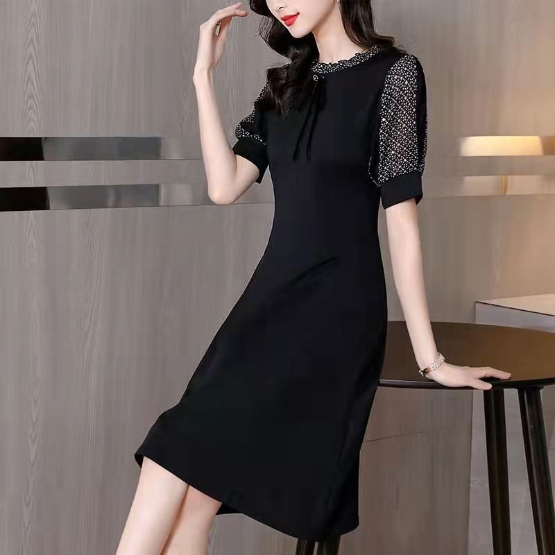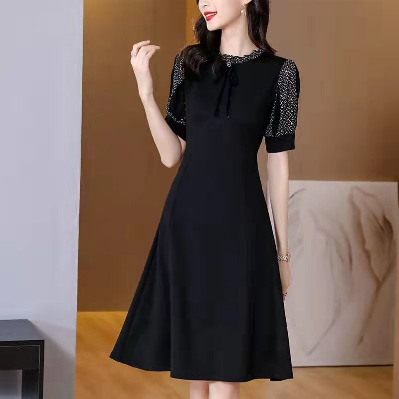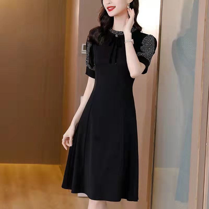 胖mm大码修身显瘦遮肚子拼接连衣裙2026夏季新款气质女人味小黑裙