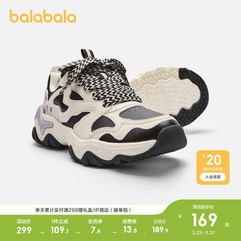 巴拉巴拉童鞋儿童运动鞋女童春秋透气时尚跑步鞋国风纹理慢跑鞋子