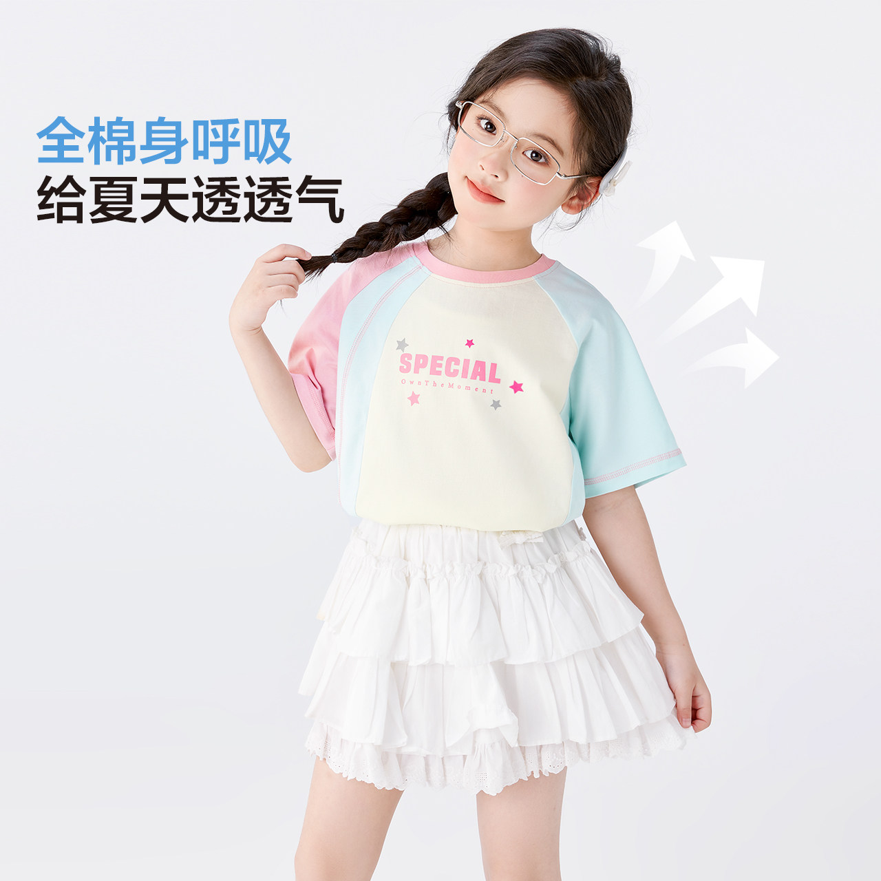 左西童装女童短袖T恤纯棉儿童夏季2026新款女孩撞色半袖夏装套装