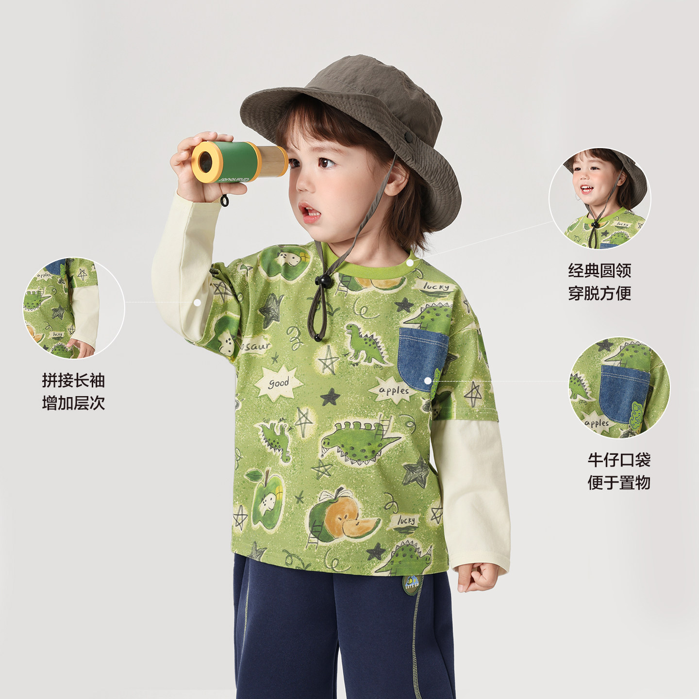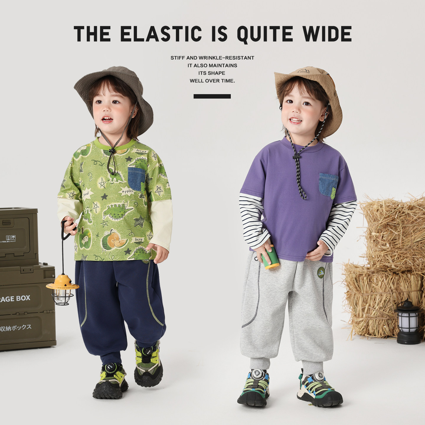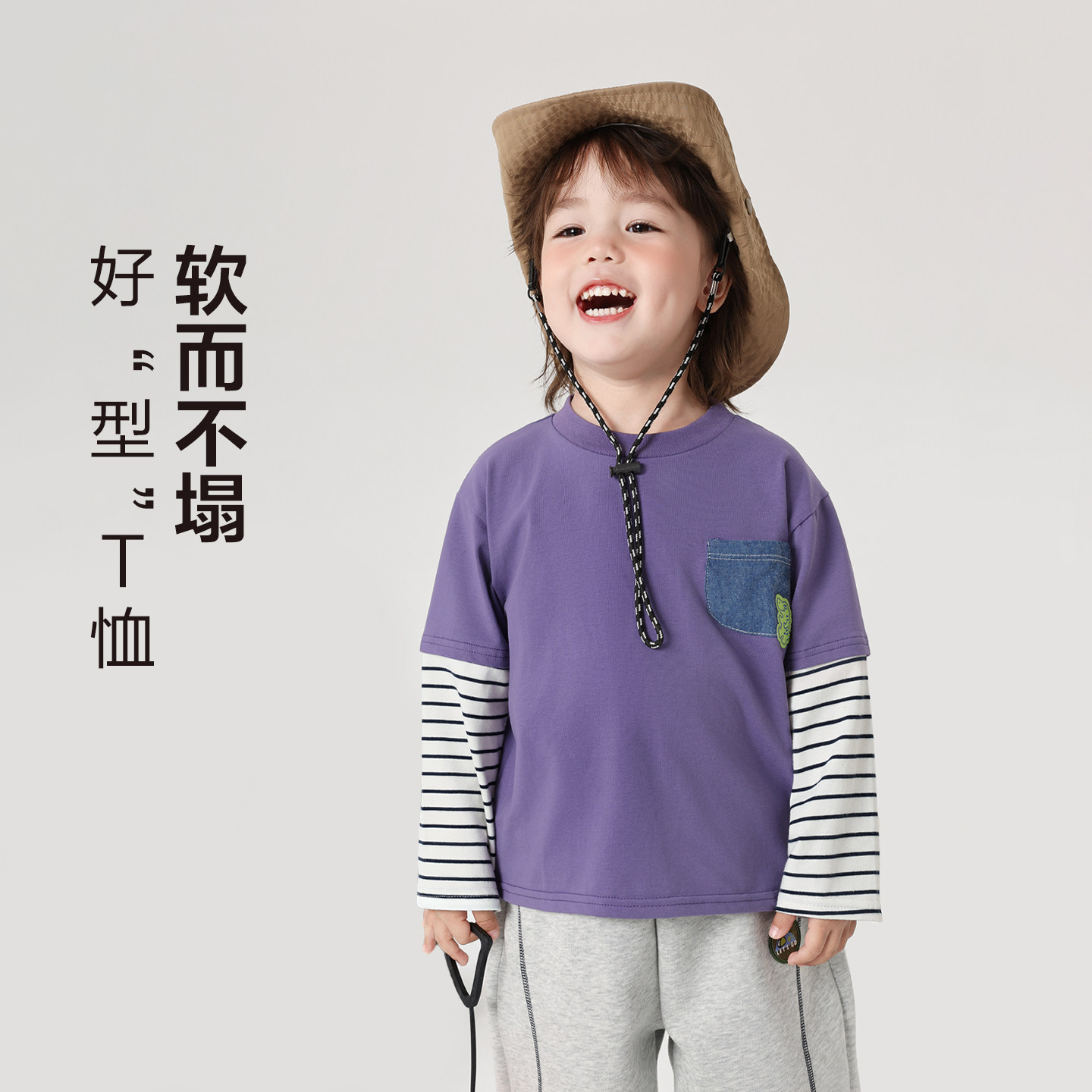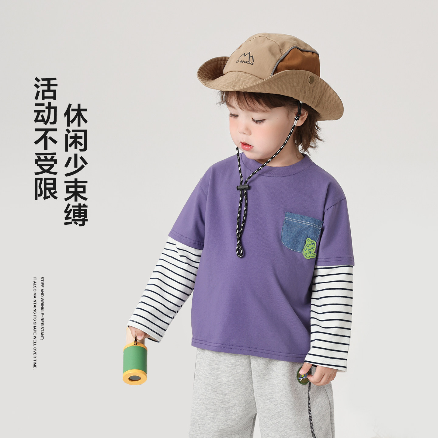 右欧男童假两件长袖T恤女童打底衫春秋季新款童装儿童潮上衣内搭