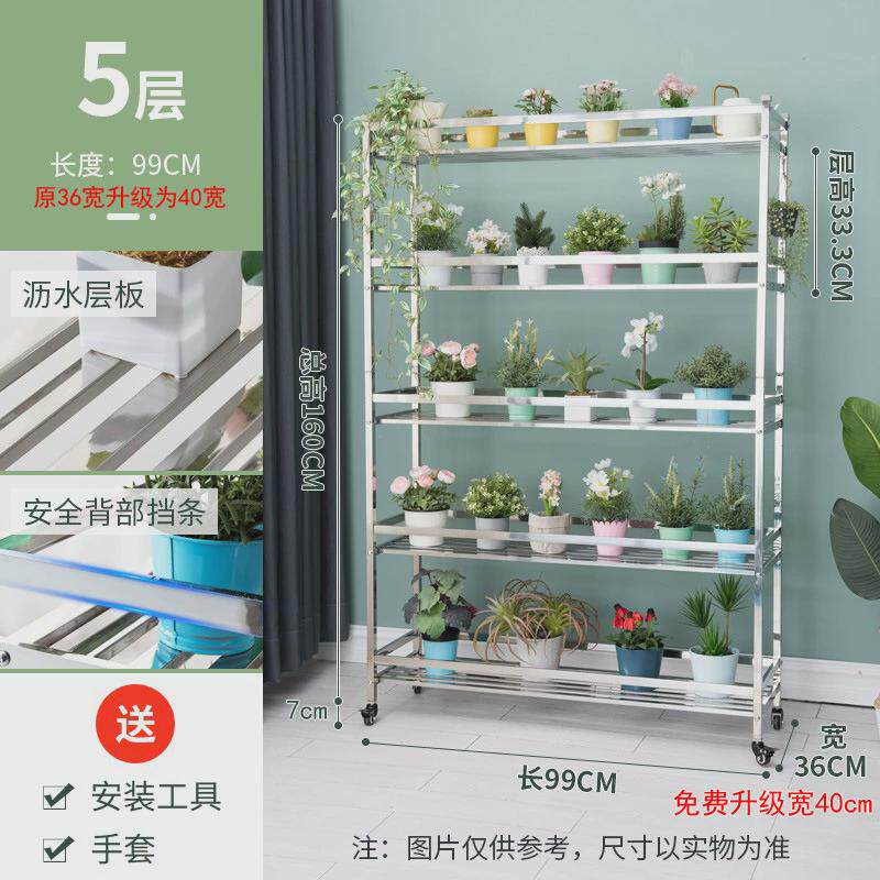 花架多肉多层不锈钢花架子阳台置物户外客厅落地式铁艺可移动带轮