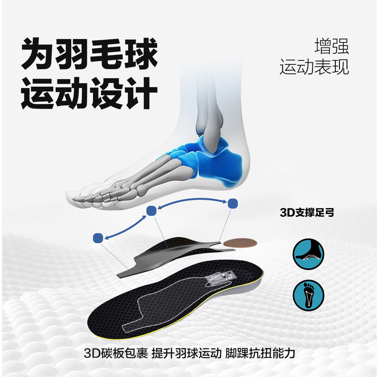 杰特福jetflow 抗扭异形碳板鞋垫适配65Z3羽毛球鞋羽毛球运动鞋垫