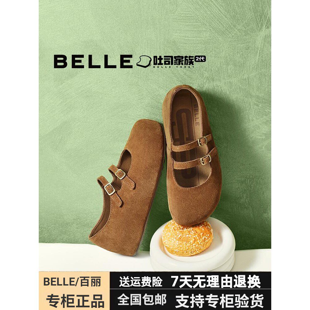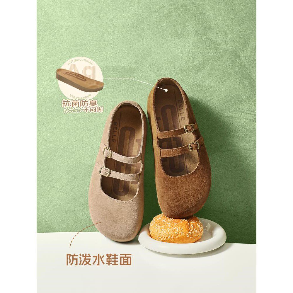 百丽珍妮吐司厚底勃肯鞋女鞋2025秋季新款平跟玛丽珍单鞋B2883CQ5