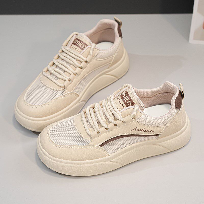 夏季薄款运动鞋女2024新款高级感透气网面配裙子的小白鞋镂空网鞋