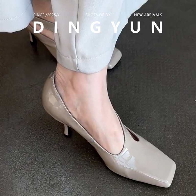 【丁允】方头镂空细跟高跟鞋女2026夏季新款气质百搭通勤浅口单鞋