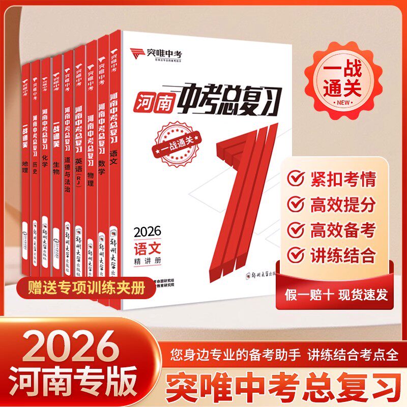 河南专版2026版河南突唯中考总复习数学语文英语物理化学政治历史中考复习资料书初三九年级真题试卷初中知识点汇总梳理考点预测