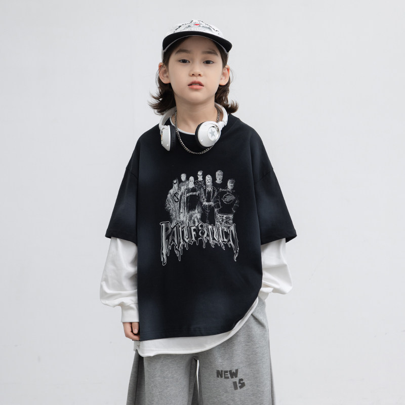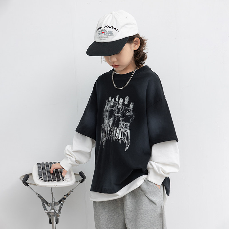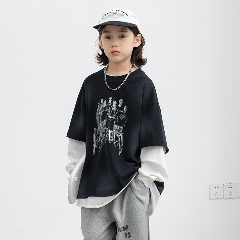 男童假两件卫衣春秋款2026新款中大儿童春季打底衫男孩春装上衣潮