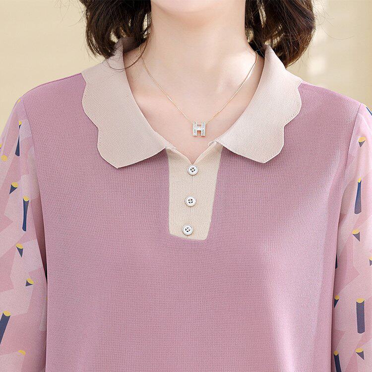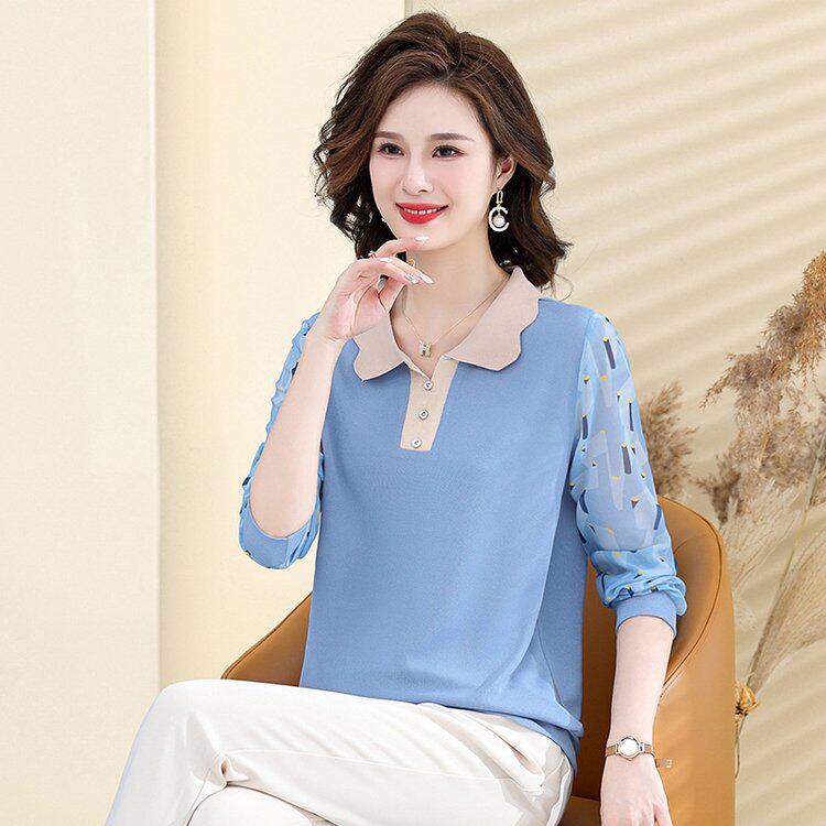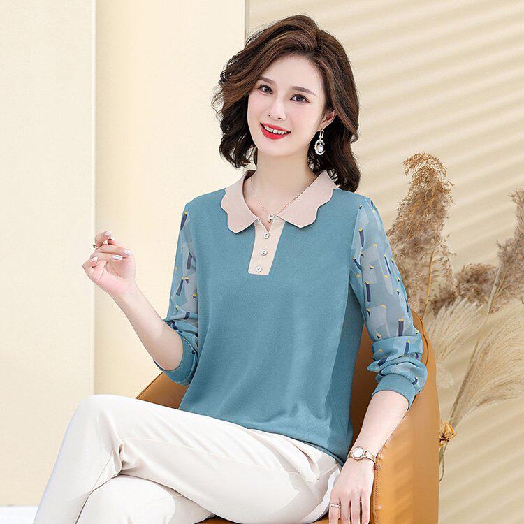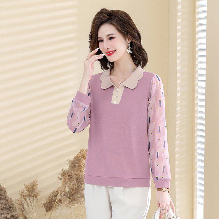 妈妈洋气薄款女款上衣中年女装春秋装打底小衫中老年早春长袖T恤