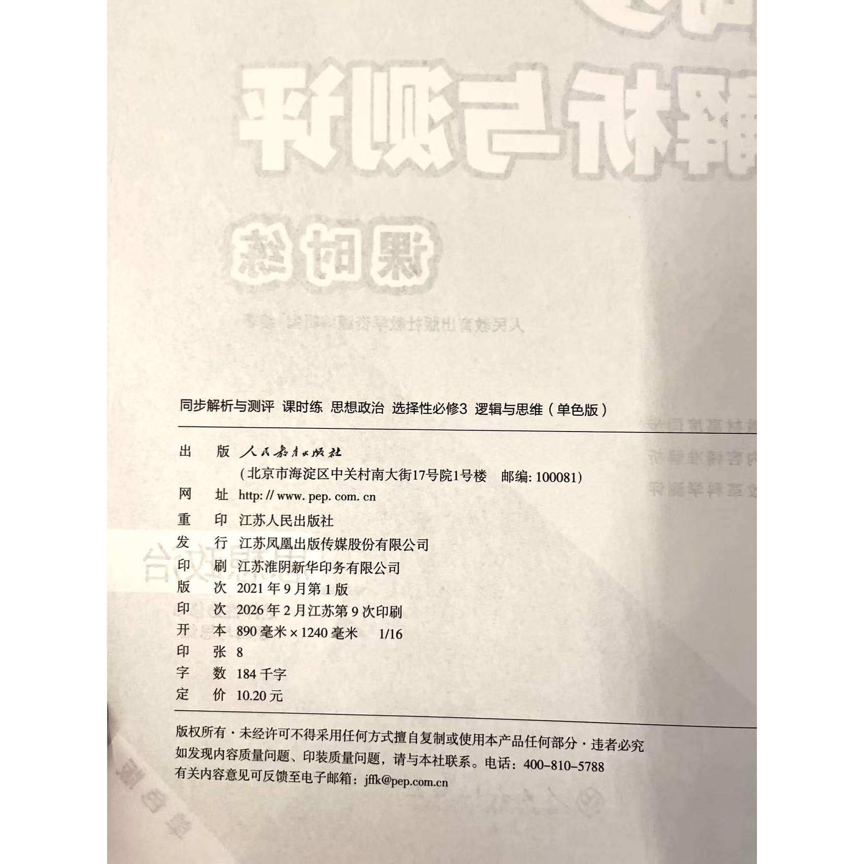 2026春同步解析与测评课时练思想政治选择性必修3三逻辑与思维含检测卷人教版单色版人民教育出版社高中同步教辅答案扫码获取