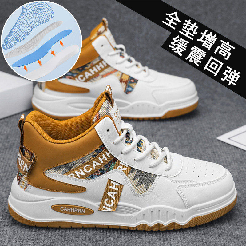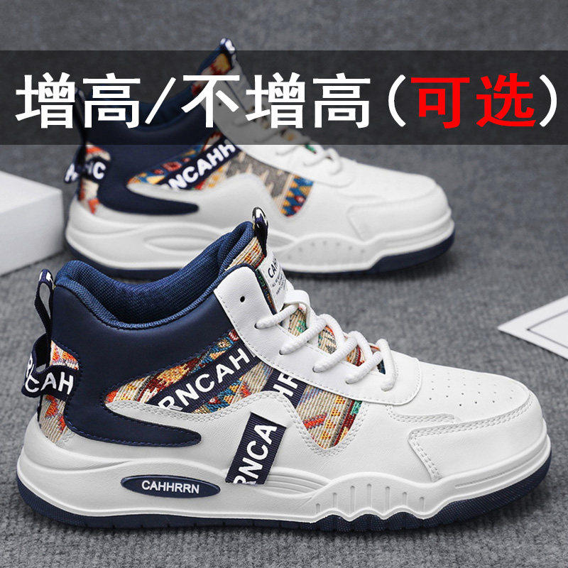 休闲男鞋内增高夏季薄款透气板鞋2026新款高帮百搭运动小白潮鞋子