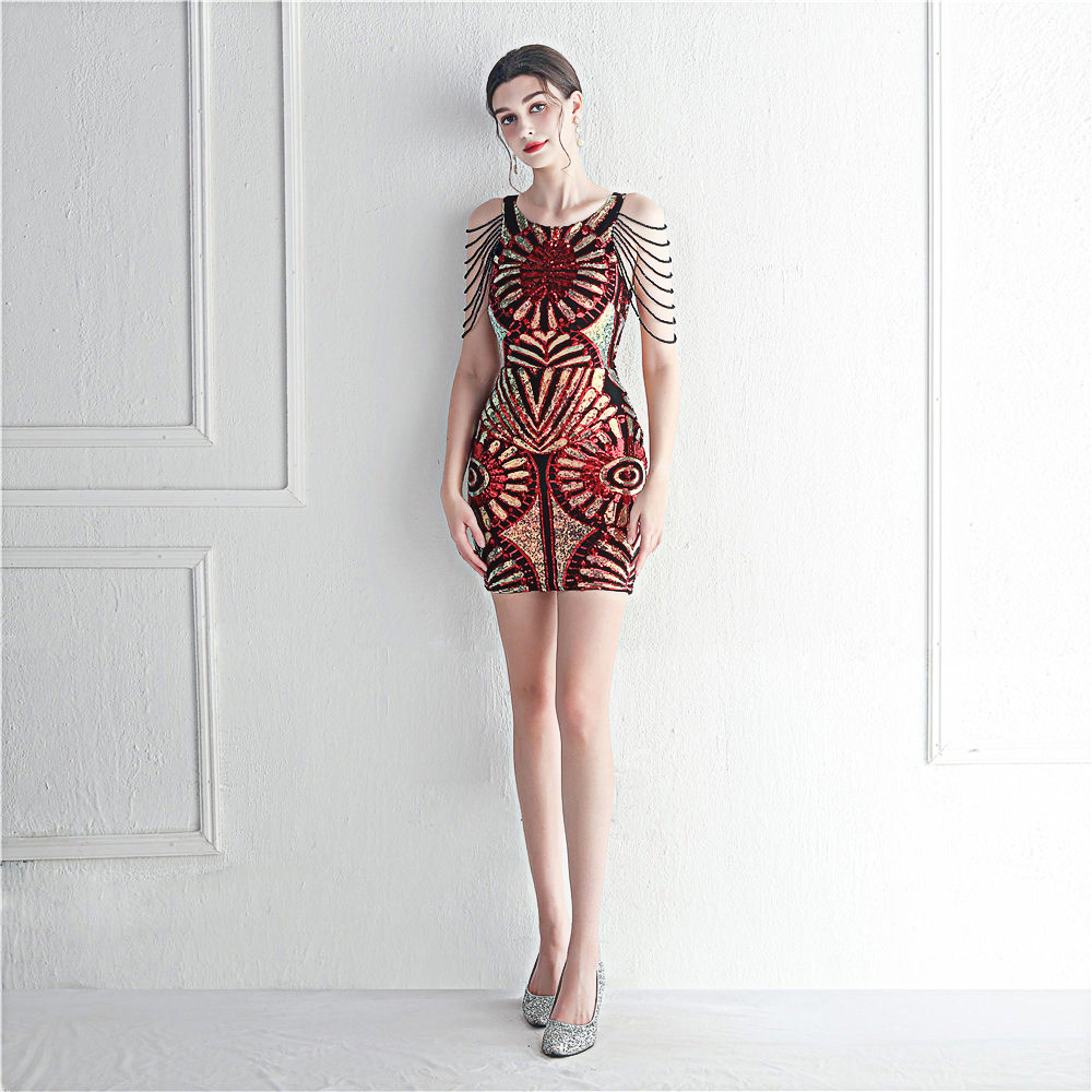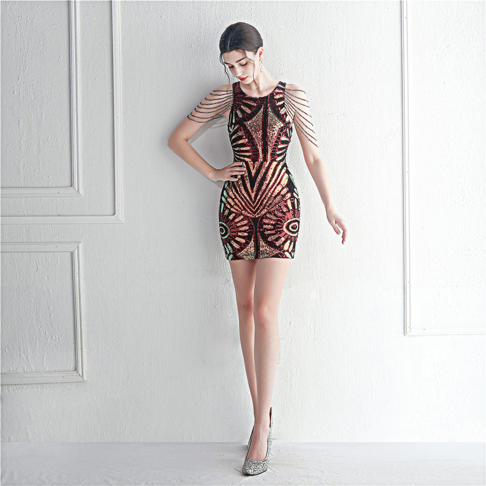 晚礼服裙女设计感小众气质气质名媛高端小个子钉珠短款短裙连衣裙