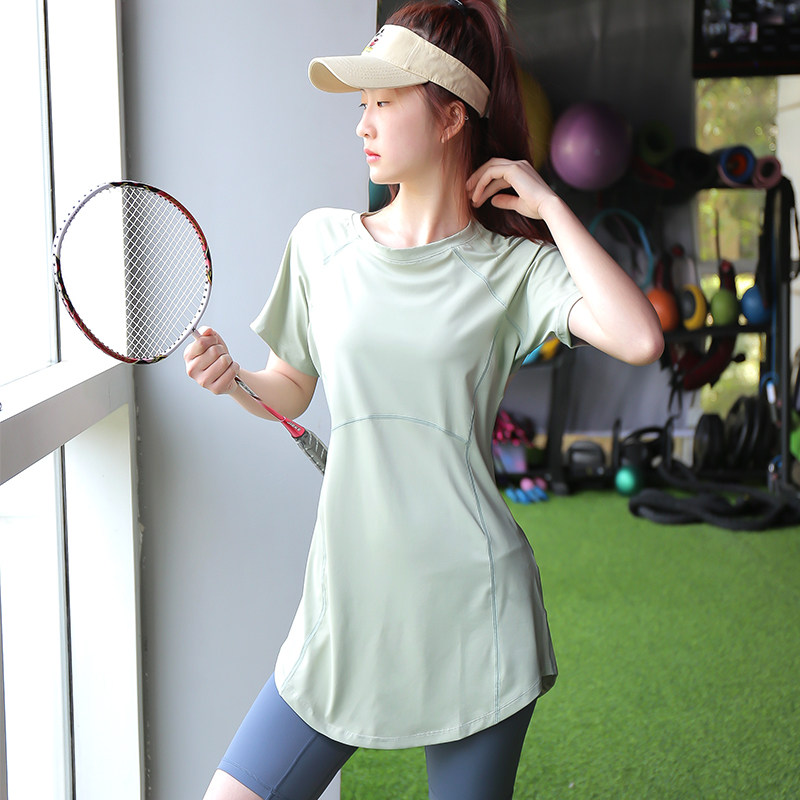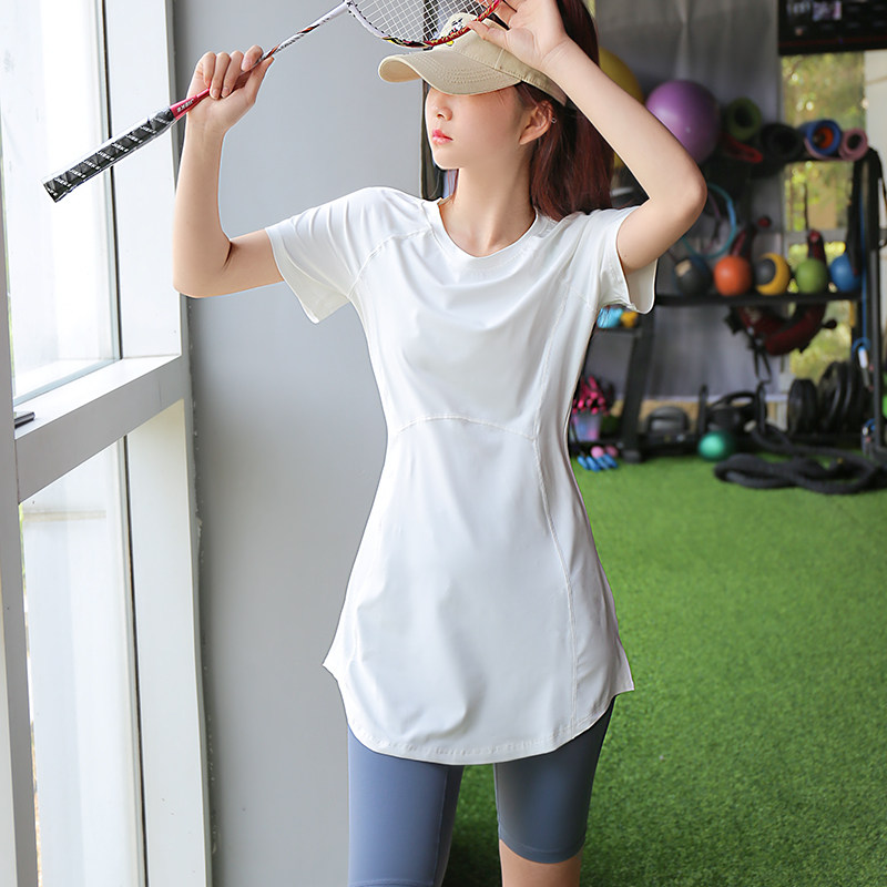 速干瑜伽t恤女长款宽松版运动短袖跑步半袖健身衣瑜伽服上衣大码