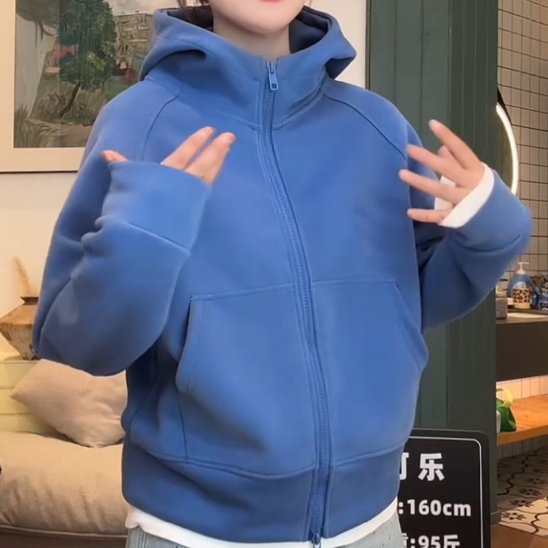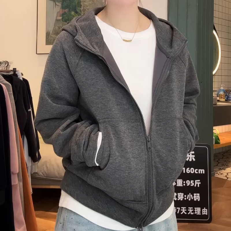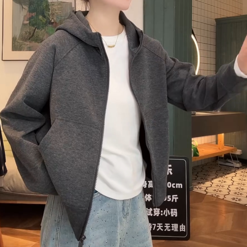 2026春装新款双拉链连帽开衫净版薄款小个子卫衣女款宽松百搭外套