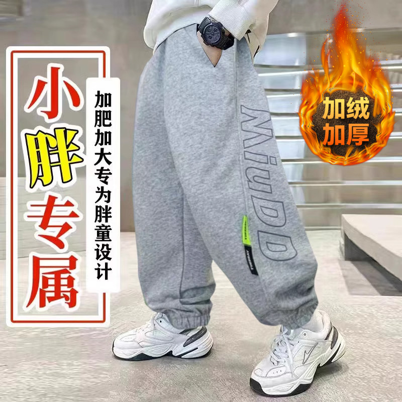 胖童裤子加绒加厚中大童男童运动裤2025冬装新款一体绒青少年童装