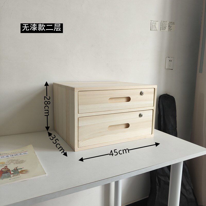 实木桌面收纳盒办公室书桌下多层抽屉式储物柜木质整理箱带锁木制