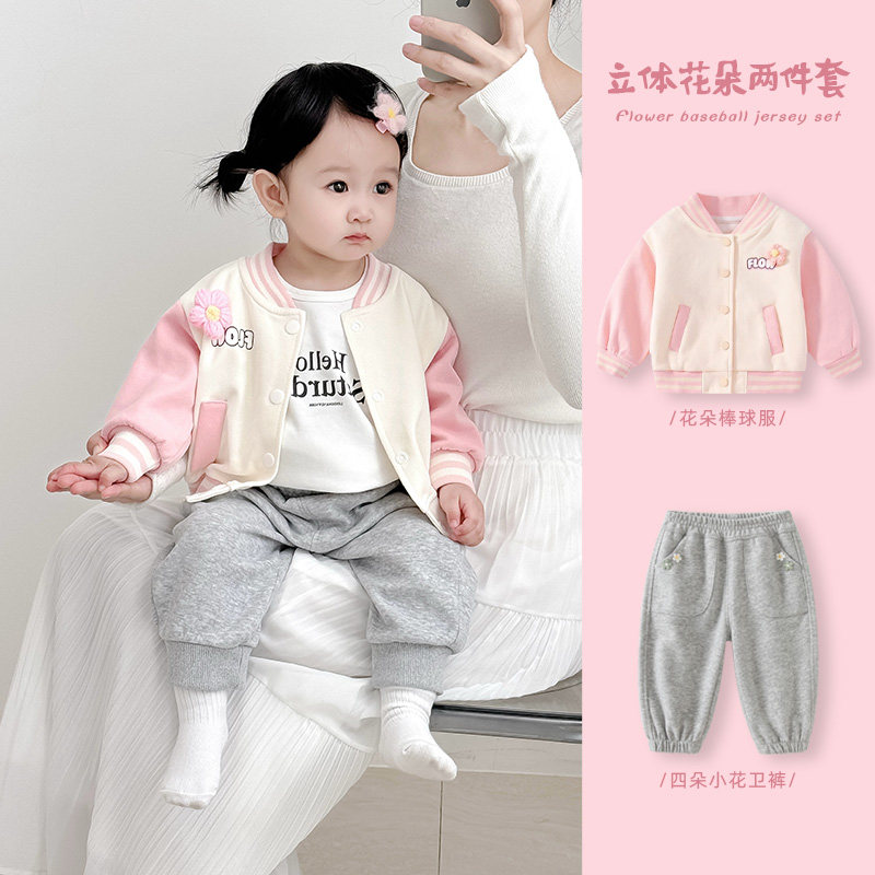 女童套装春装女宝宝洋气卫衣卫裤外套春季分体三件套婴儿外出衣服