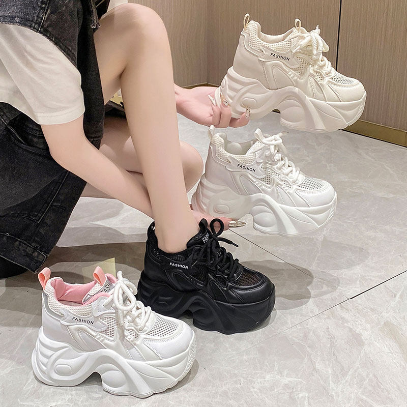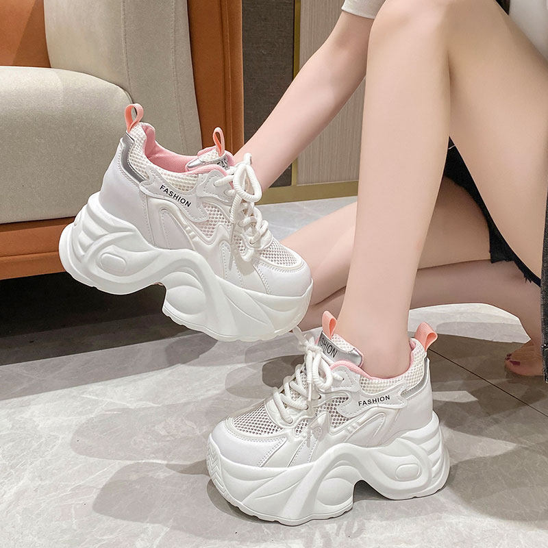 2026春季新款9cm内增高女鞋厚底透气老爹鞋女百搭网面运动休闲鞋