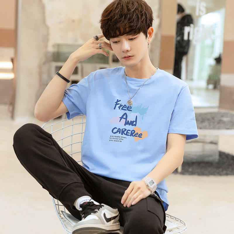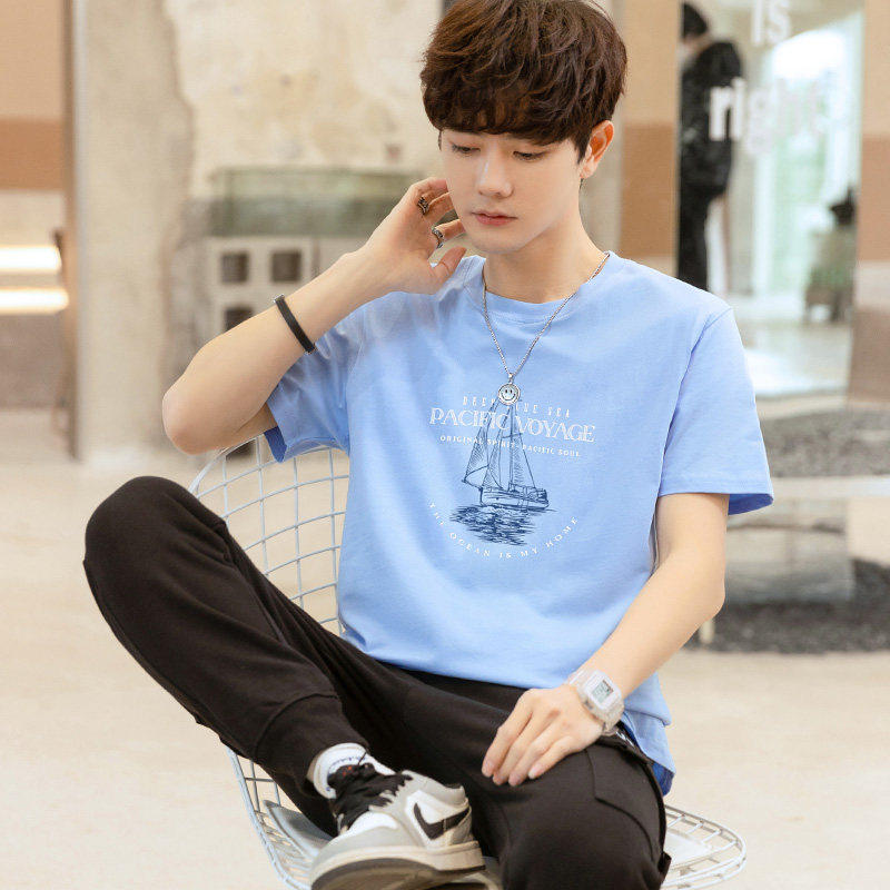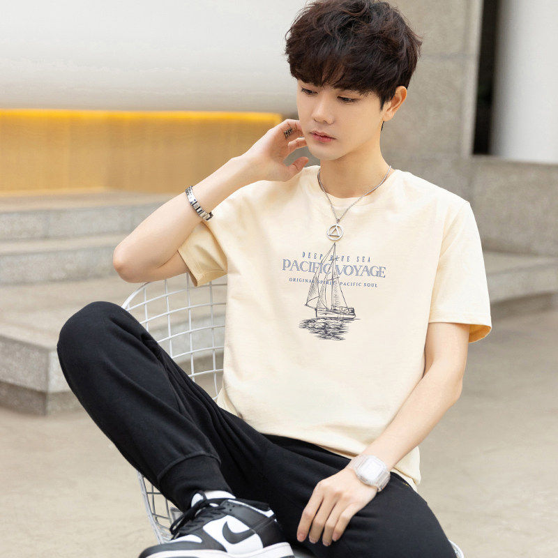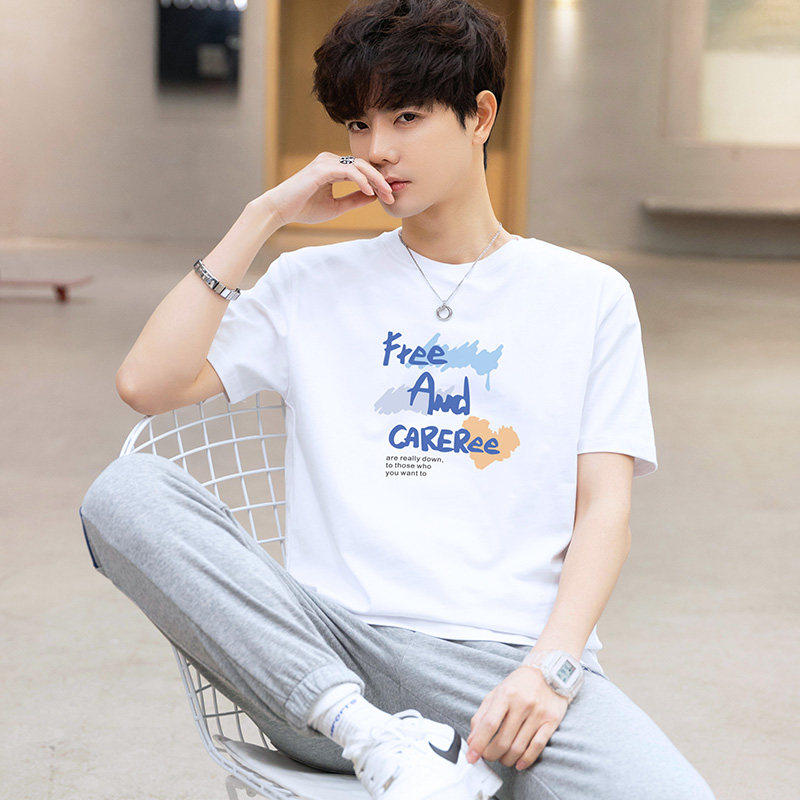 新款帅气纯棉短袖t恤男 2026夏季青少年初中高中学生潮流冰丝半袖