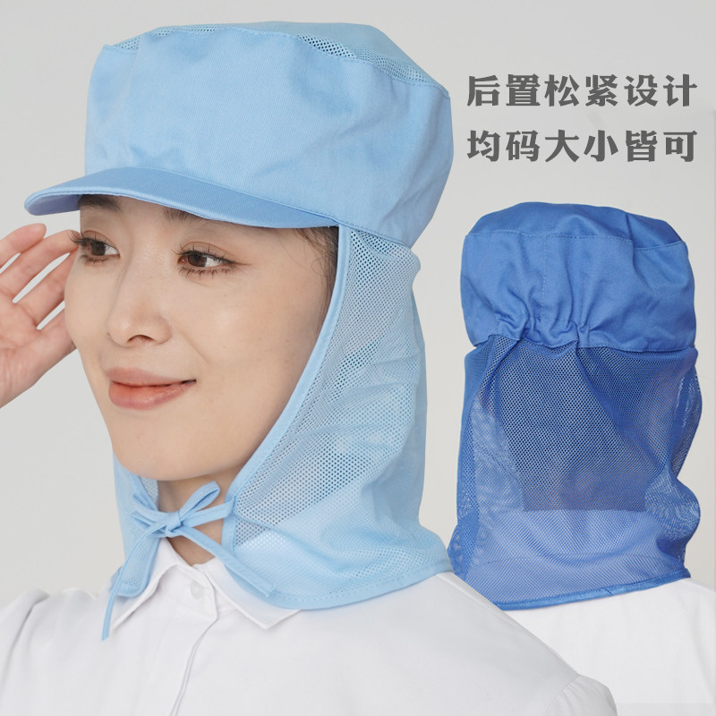 透气食品工作帽厂网帽男女披肩防尘无尘车间专用防掉发包头帽子