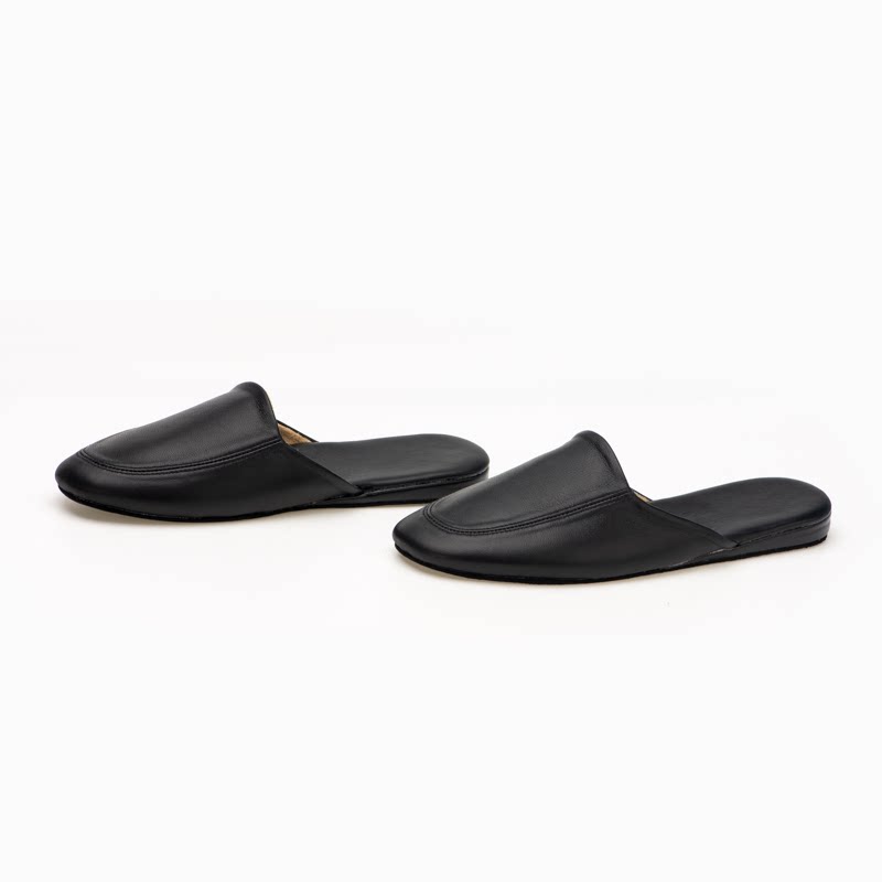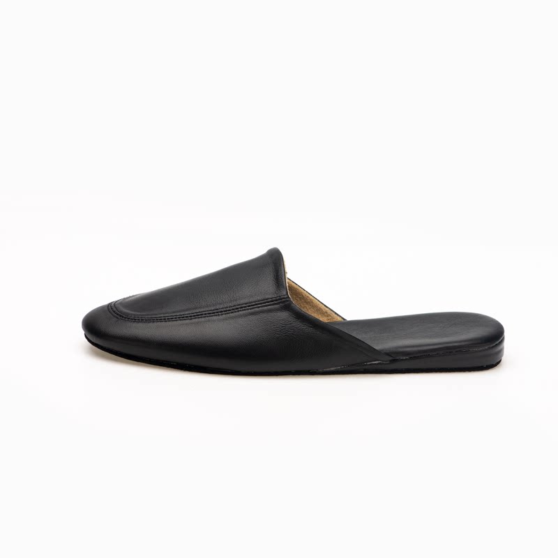 轻奢纯色春秋男款家用防滑静音小羊皮家居包头室内木地板真皮拖鞋