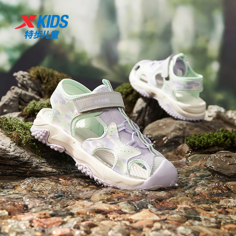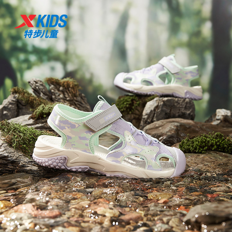 特步童鞋2026夏季新款女童包头凉鞋防滑儿童沙滩鞋中大童运动鞋子
