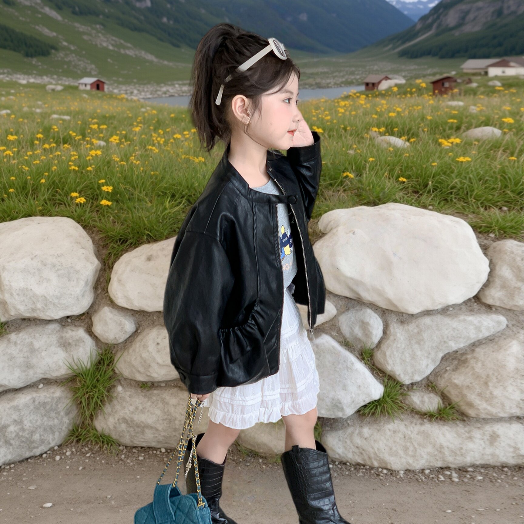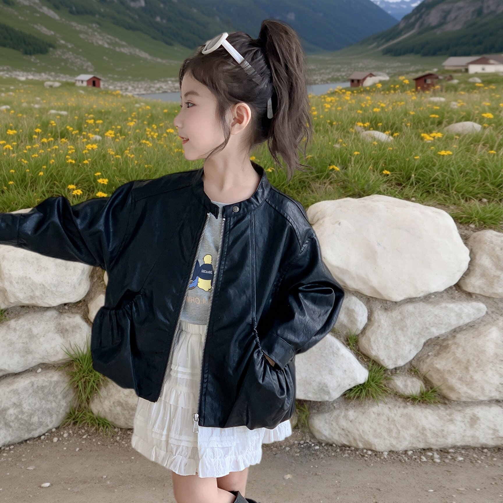 女童皮衣外套春装2026新款儿童春秋季洋气时髦小女孩宝宝黑色上衣