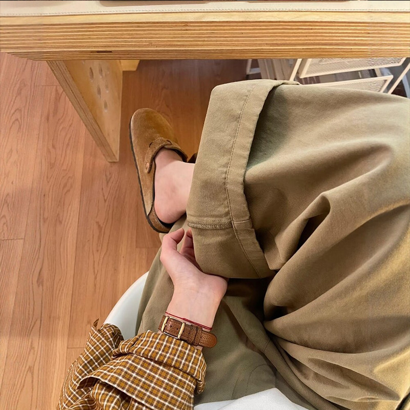 卡其色工装裤女款2026新款春季大码小个子阔腿裤今年流行款的裤子