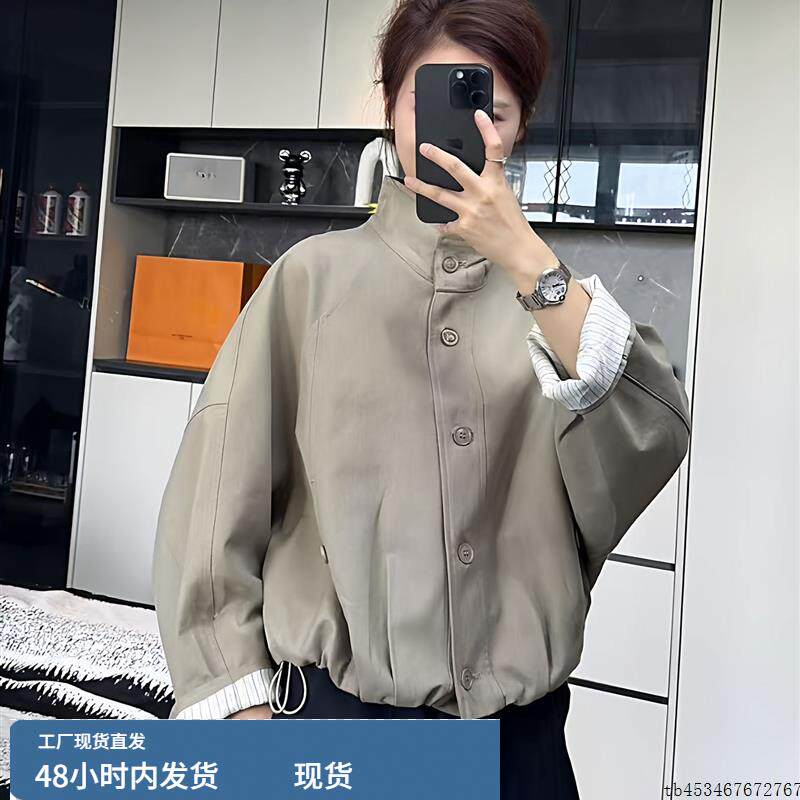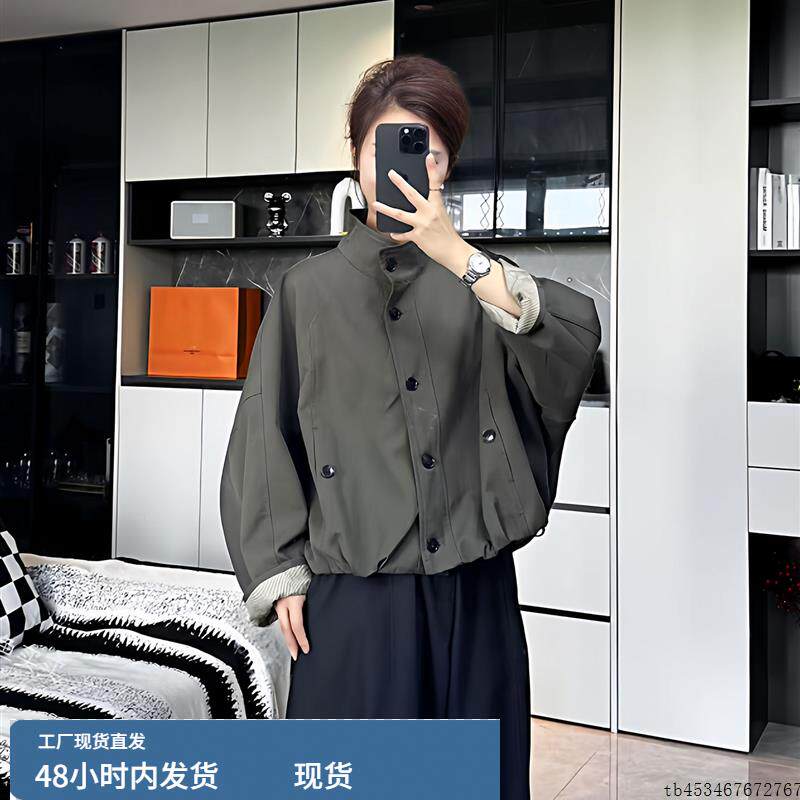 2025春秋新款韩版立领夹克外套女款宽松显瘦时尚设计感小个子上衣