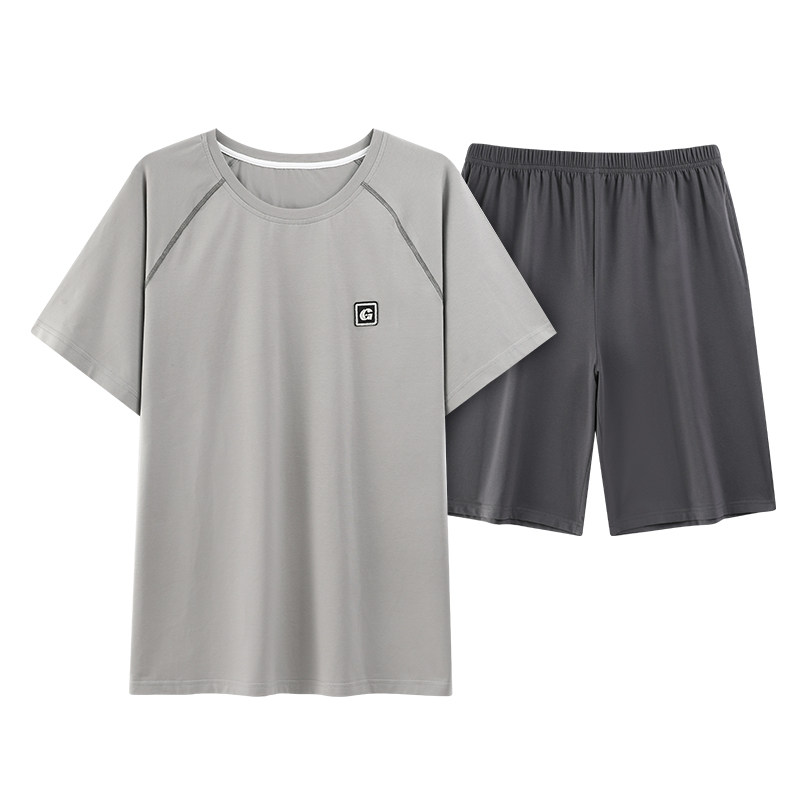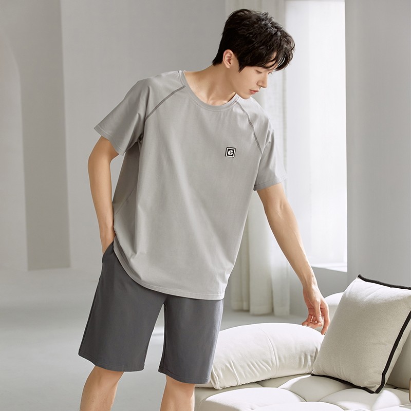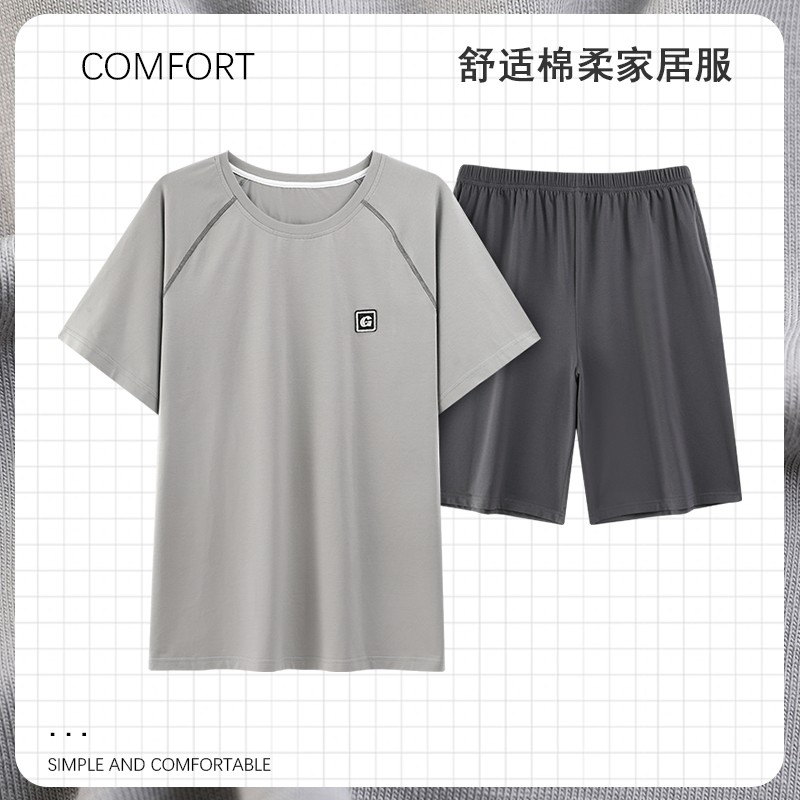 男士夏季睡衣纯棉薄款短袖短裤家居服宽松休闲青年男款可外穿套装