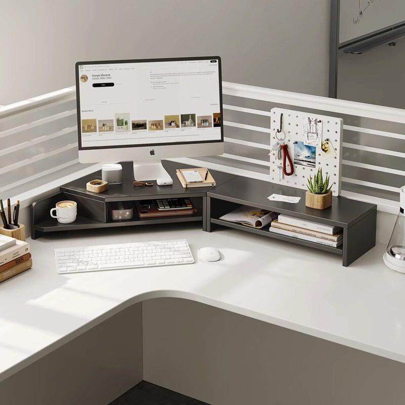 实木三角显示器增高架转角办公桌面电脑液晶屏架子键盘置物架