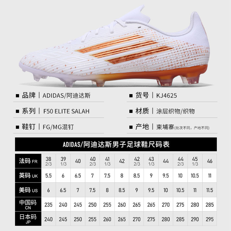 阿迪达斯F50足球鞋Adidas萨拉赫天然草FG/MG混钉男子运动鞋KJ4625