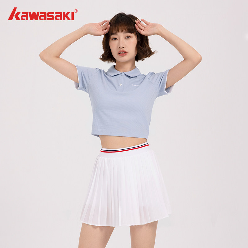 Kawasaki川崎羽毛球翻领套装女休闲运动网球跑步裙速干短袖短裙